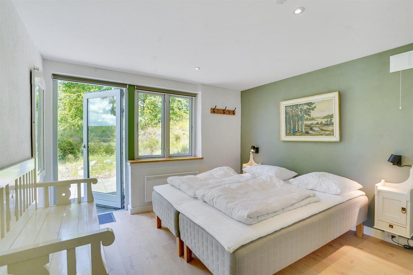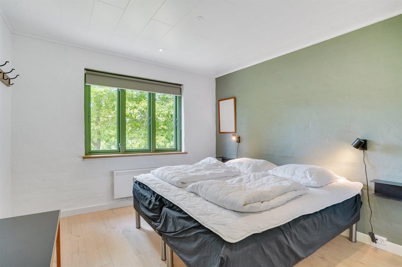 Der er i alt 3 soveværelser. Sovepladserne fordeler sig på: 6 sovepladser i dobbeltsenge. 1 soveplads i enkeltseng. Derudover er der 1 stk. barneseng.