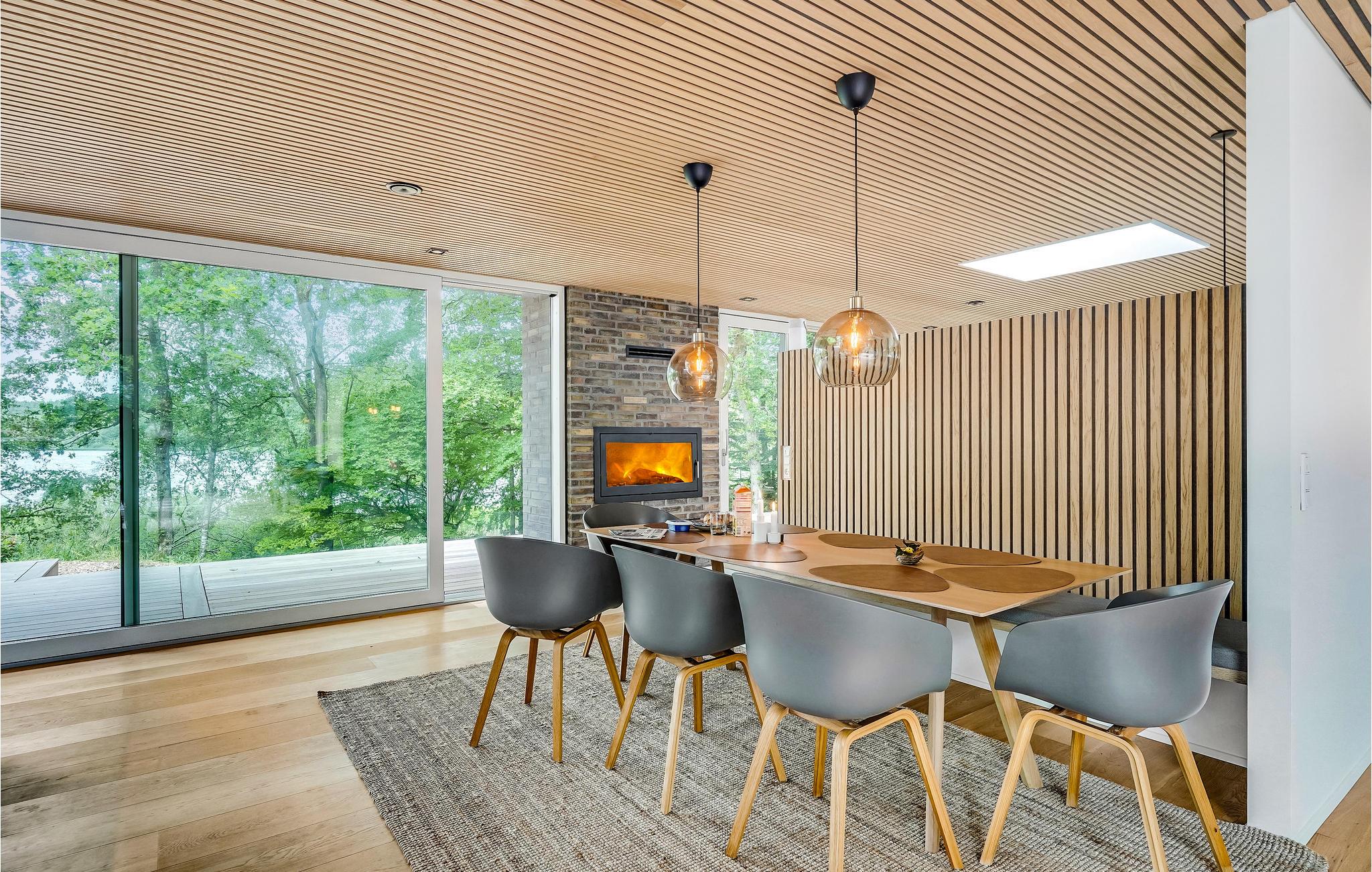 Glæd jer til en herlig ferie i dette skønne sommerhus, som ligger på en flot naturgrund. Her vil I straks føle jer hjemme, da huset er gennemtænkt og stilrent indrettet med komfortable løsninger. Her kommer I ikke til at mangle noget. Nyd den friske luft på terrassen med udsigt til søen over morgenmaden eller en grillmiddag i sommerhalvåret. I de kolde måneder kan I læne jer tilbage i sofaen med en bog, mens ilden knitrer i brændeovnen.