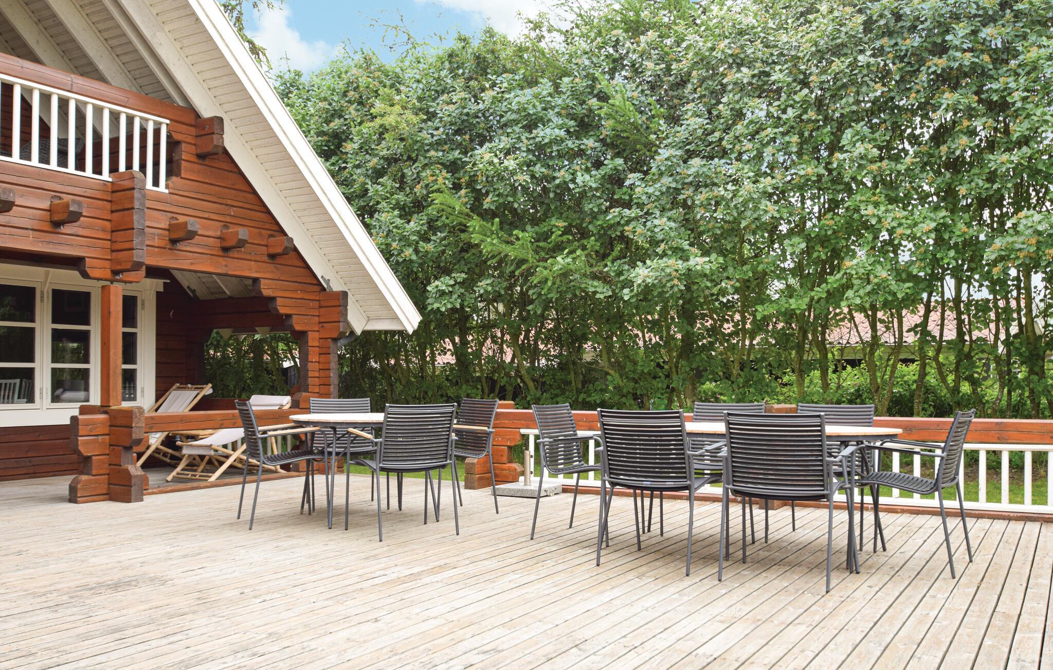 Eksklusiv finsk bjælkehytte med sauna og to balkoner nær Langelands Golfklub og kystens fiskemuligheder.