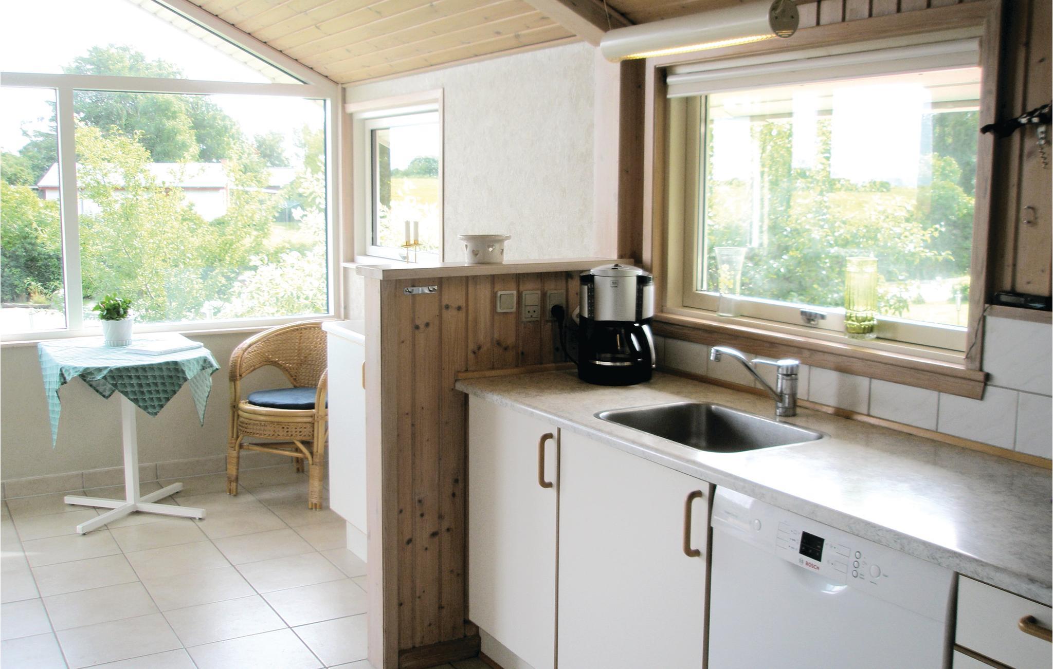 Dette dejlige sommerhus ligger for enden af en lukket vej i det rolige feriehusområde Bukkemose på Sydlangelands østkyst, blot 300 m fra vandet. Huset har en stor stue med brændeovn, åbent køkken, udgang til en overdækket træterrasse samt tre soveværelser, badeværelse og indgangsparti. Der er klinkegulv med gulvarme på badeværelse, køkken og indgangsparti og tæpper i resten af huset. Sommerhuset er udstyret med masser af komfort, herunder et to pers. spabad, sauna og et veludstyret køkken. På den store træterrase, som både er åben og overdækket, er der næsten altid mulighed for at finde et sted at sidde eller solbade. Uanset om I ønsker sol, skygge eller læ. Huset ligger på stor naturgrund med god plads til diverse boldspil og leg, og ligger ud til åbne marker med udsigt til det rige dyreliv, og havkik hvor I kan følge de store færger og containerskibe m.m. Fra huset er der kun 300 meter fra langelandsbæltet, 800 meter til lystfiskersø, 1,6 km til Langelands Golfklub med 18 huller og 6,5 km fra Humble, hvor der er gode indkøbsmuligheder. Området og huset er ideelt for lystfiskere, da der er gode fiskemuligheder, både fra kysten og med båd. Fisker I fra båd er der slæbested i Bukkemose. Huset har udendørs fiskerenseplads og fryser. Derudover er der masser af attraktioner inden for kort køre-/cykleafstand bl.a. Herregården Skovsgaard, Langelandsfortet, de vilde heste m.m. og ikke at forglemme hele den skønne langelandske natur. Uanset om I ønsker en afslappende eller aktiv ferie, så vil dette sommerhus være en rigtig god og hyggelig base.