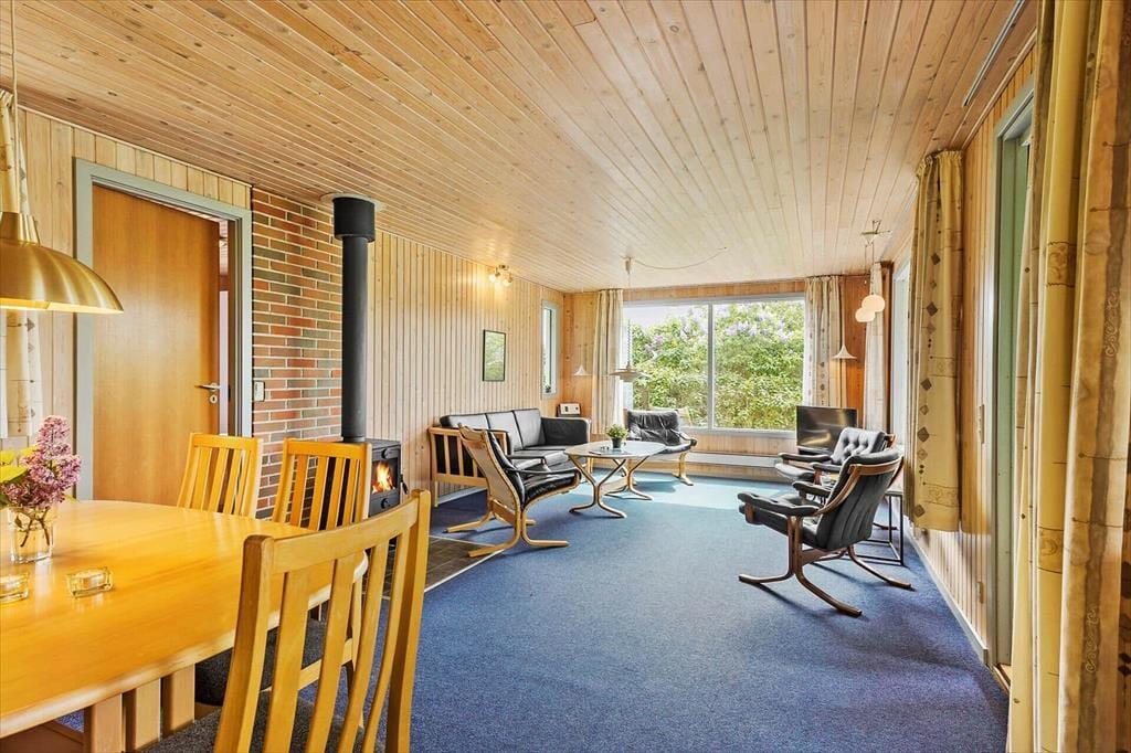 Sommerhuset byder dig velkommen med sin autentiske charme og hyggelige atmosfære. Stuen er udstyret med en brændeovn, der skaber en varm og hyggelig stemning – perfekt til hyggelige aftner med familien. Køkkenet er i åben forbindelse med stuen, hvilket gør det nemt at være social, mens der tilberedes feriemåltider. Huset rummer tre gode soveværelser, som giver plads til i alt seks personer. Her er der ro til en god nats søvn, så du er klar til næste dags oplevelser.