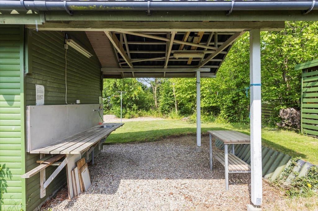 Sommerhusets store have indbyder til mange timers udendørs hygge og aktiviteter. Her er der masser af plads til boldspil og leg, eller du kan bare nyde solens stråler fra den delvist overdækkede terrasse. Hvis du er lystfisker, vil du sætte pris på det overdækkede fiskerensebord, hvor dagens fangst kan klargøres til grillen. Om aftenen kan du tænde op i grillen og nyde en lækker middag under åben himmel, mens solen går ned over Langeland.