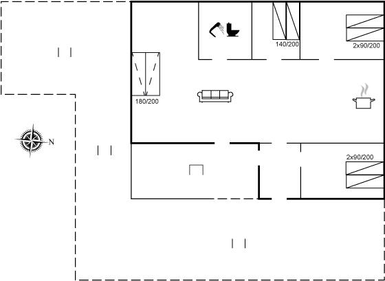Der er i alt 3 soveværelser. Sovepladserne fordeler sig på: 4 sovepladser i dobbeltsenge. 2 sovepladser i enkeltsenge. 2 sovepladser i sovesofa (dobbelt). 2 af disse sovepladser befinder sig i stuen.