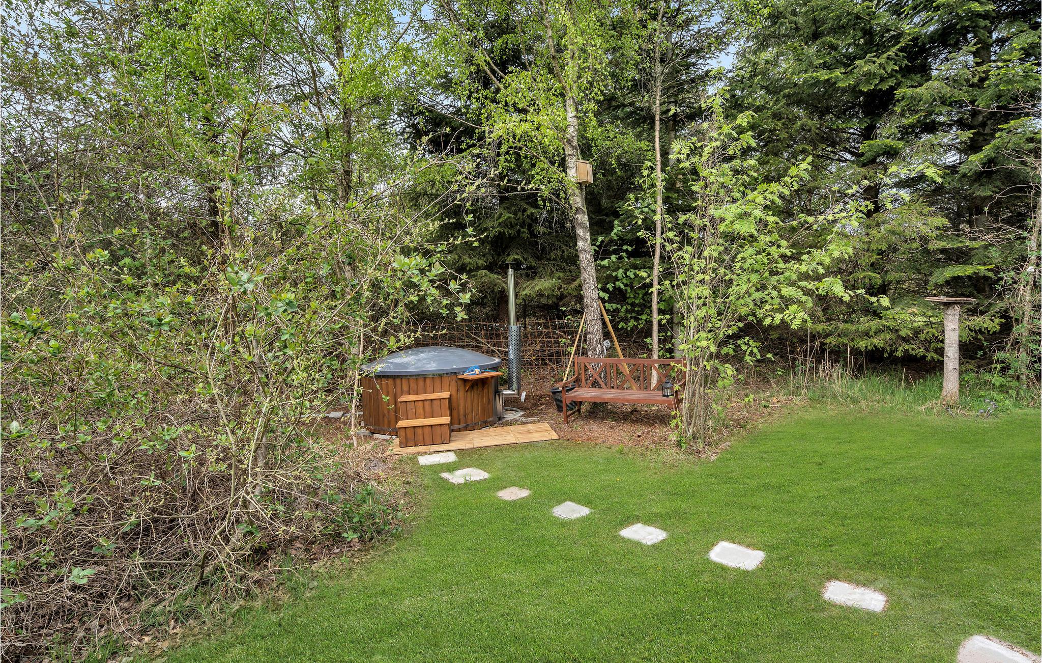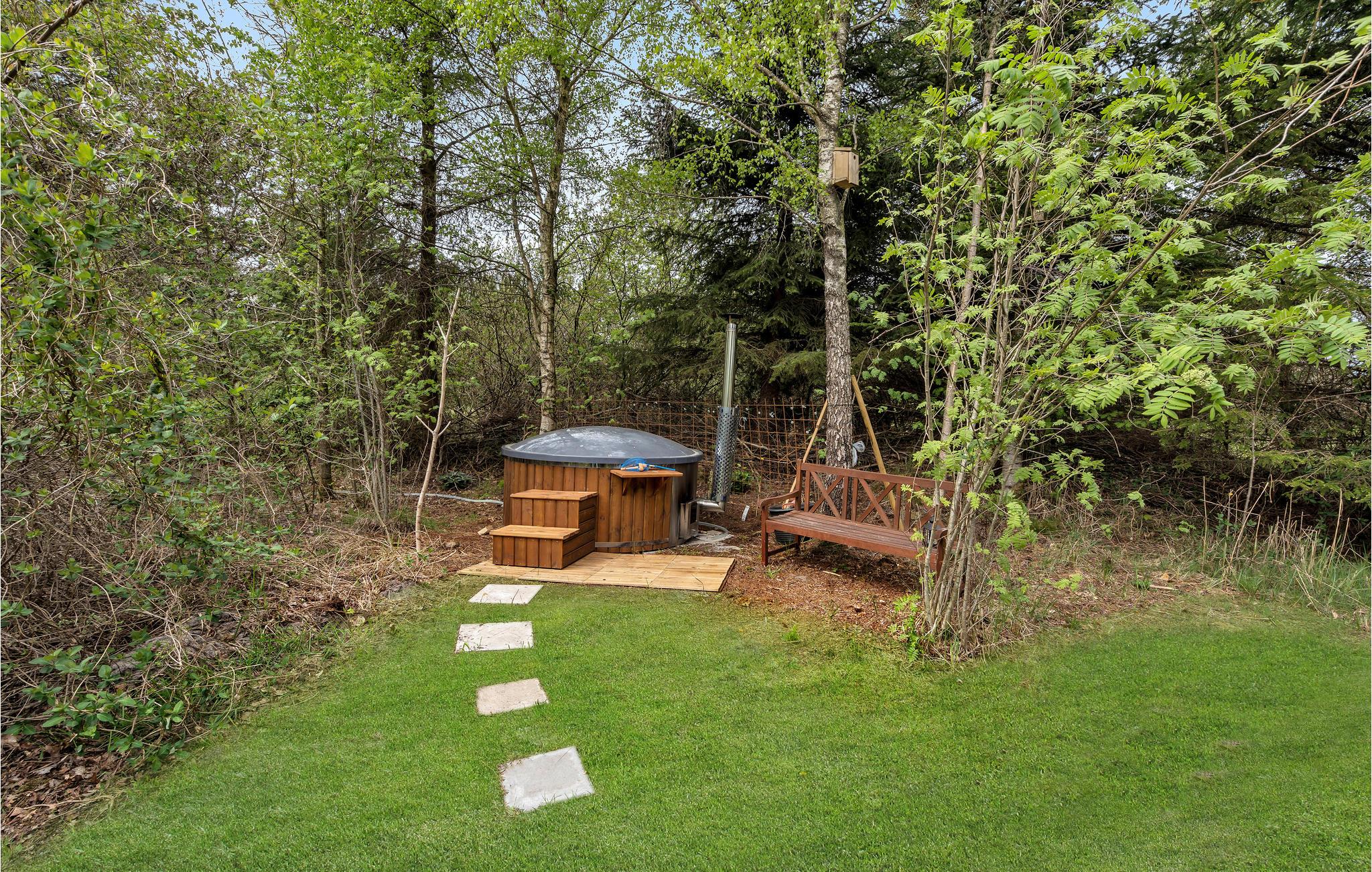 Hyggeligt træsommerhus ved Bunken Strand med brændeovn, vildmarksbad og stor naturgrund.