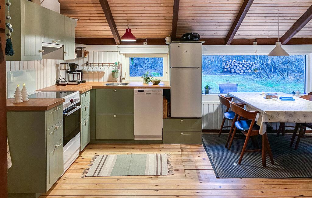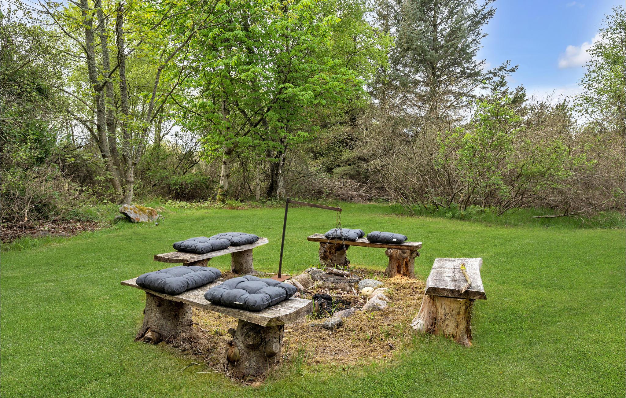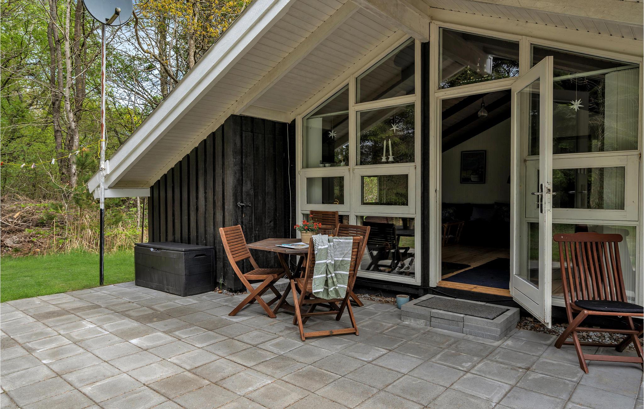 Velkommen til dette fine hus, der tilbyder jer en unik og hyggelig feriestemning. I får en særlig hyggelig og rummelig fornemmelse takket være åbent til kip. Helårsisolation og brændeovn sikrer behagelige vinterophold. Huset har trægulve, vægge- og lofter og fremstår lige moderne og rustikt. På den velplejede ejendom omkring huset er der en fliseterrasse, hvor I kan nyde solen og holde hyggelige grillaftener, samt god plads til boldspil og socialt samvær omkring bålpladsen.