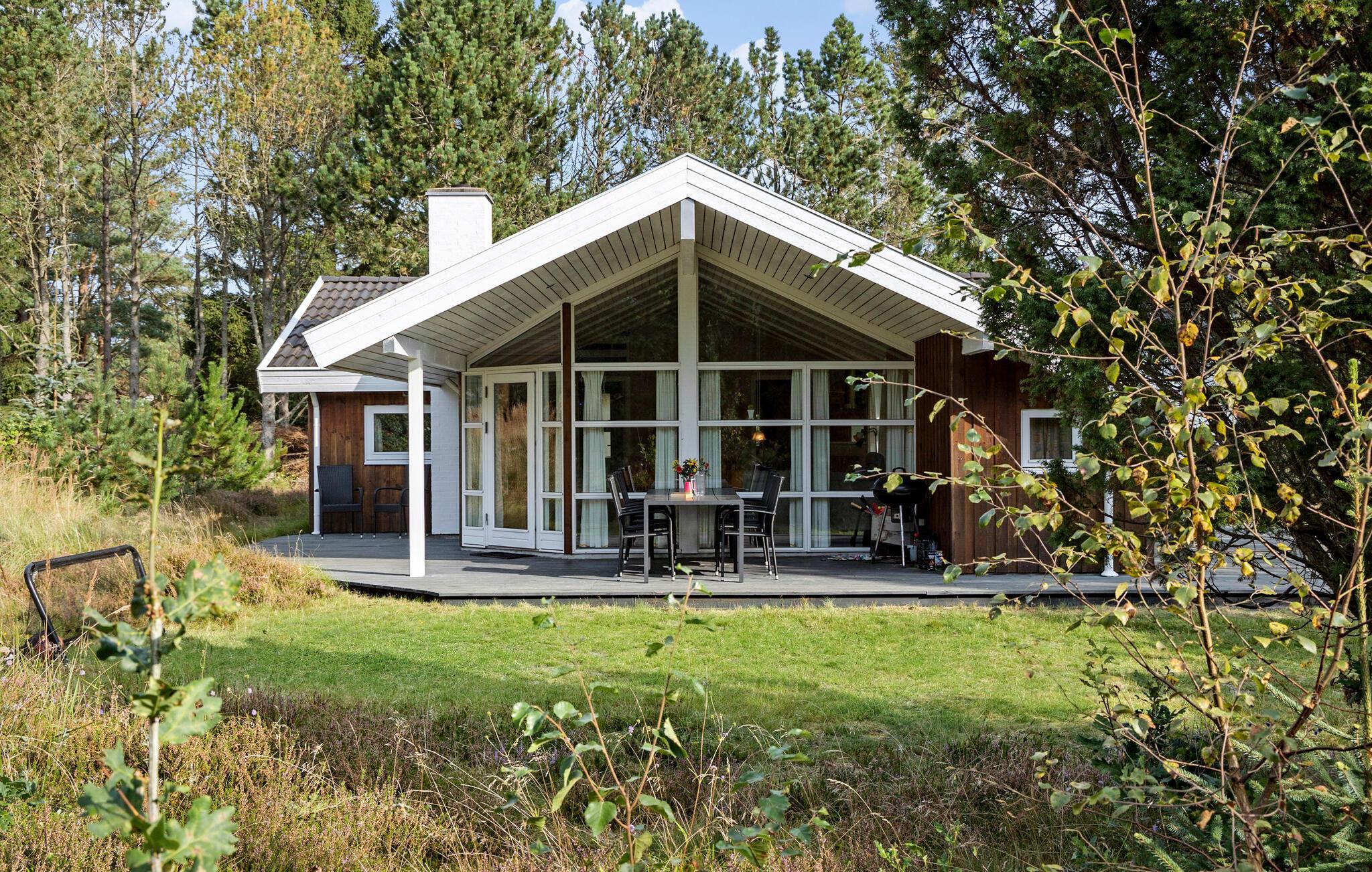 Hyggeligt sommerhus ved Bunken Strand med sauna, spabad og stor have til aktive og afslappende feriedage.