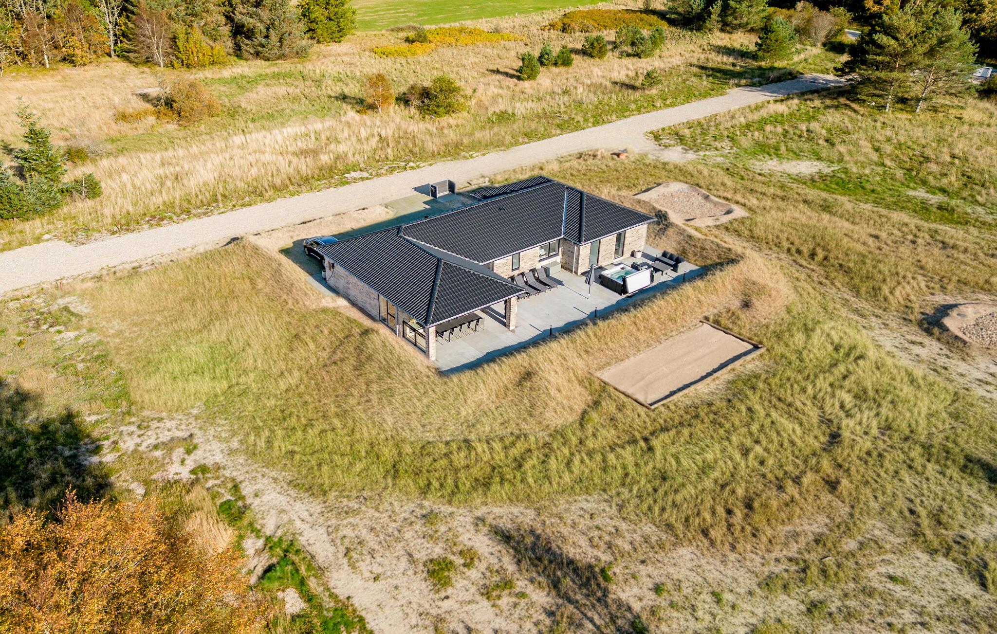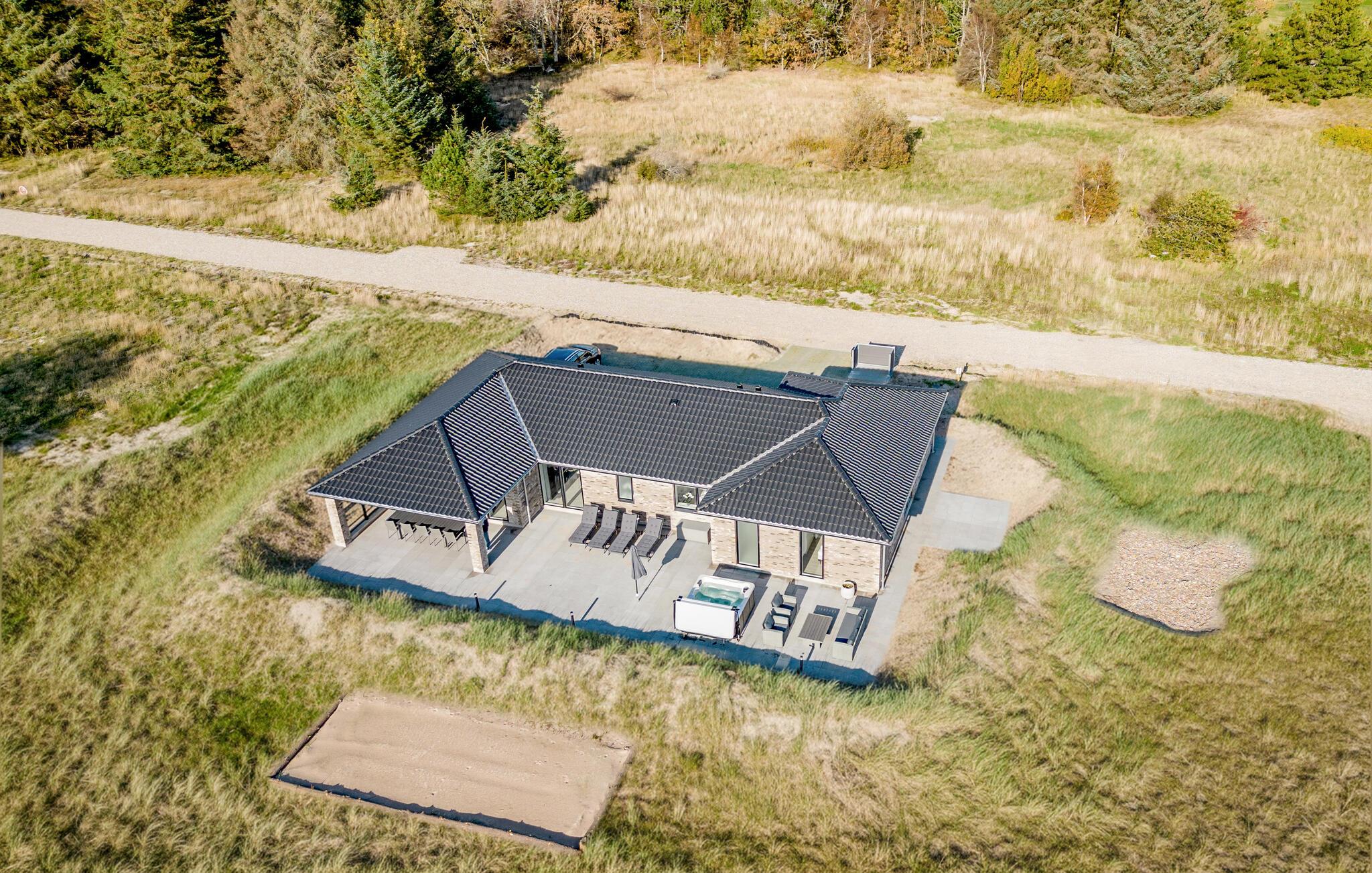 Moderne feriehus ved Hvide Klit golfbane med spabad, aktivitetsrum og kort afstand til stranden.