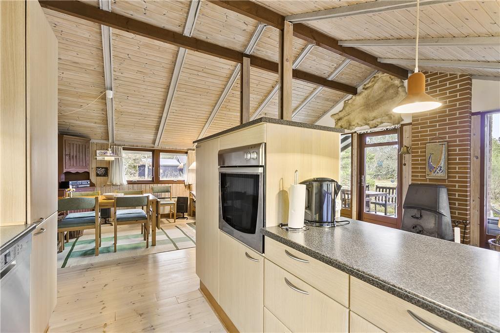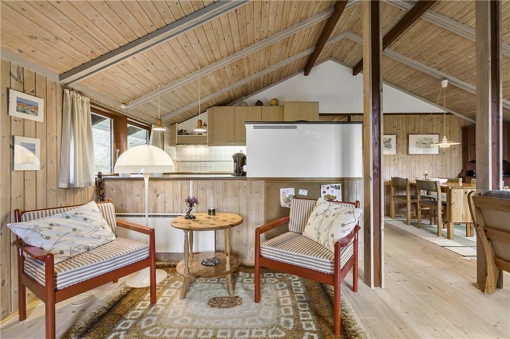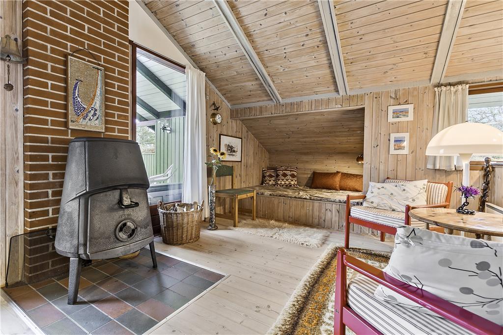 Sommerhuset på Oksevej 29 indfanger alt det, vi forbinder med dansk sommerhushygge. Trævæggene og de store vinduespartier skaber en lys og indbydende atmosfære, og husets mange hyggelige detaljer bidrager til en afslappende stemning. Det åbne opholdsrum er hjemsted for samvær og hygge, hvor spiseområdet og den komfortable stue er samlet omkring en brændeovn, der lokker med varme og ro på kølige aftener. En særlig perle i huset er den indbyggede alkove – perfekt til en lur, højtlæsning eller bare en stille stund. I køkkenet er der god plads til at forberede måltiderne, mens snakken flyder, og ferien folder sig ud.