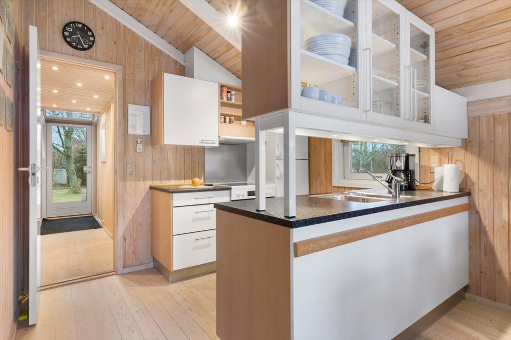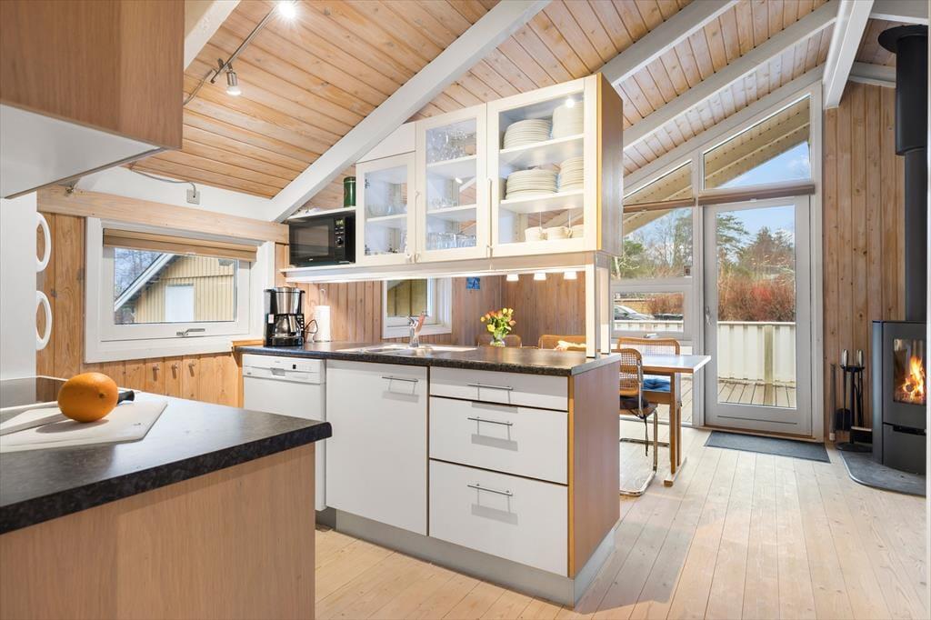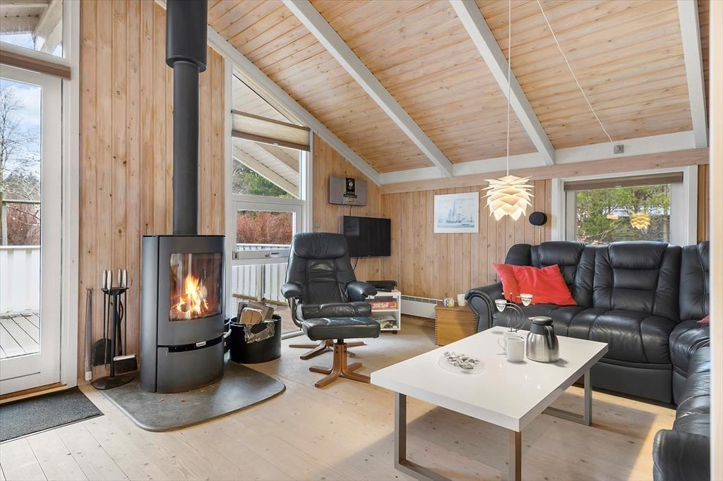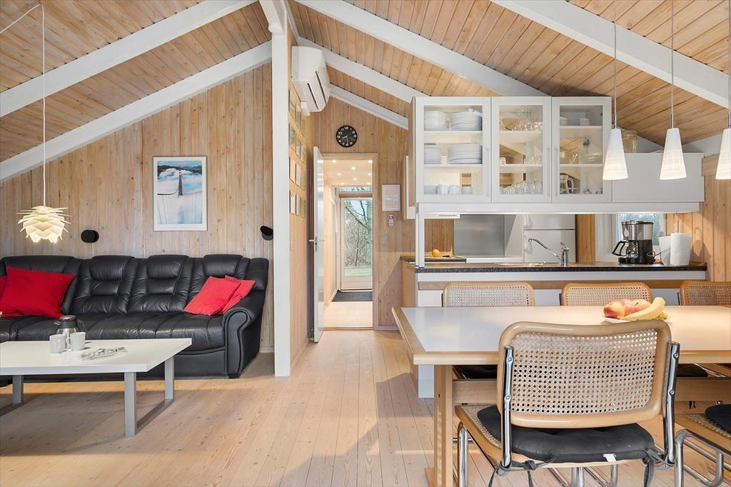 Sommerhuset byder på en indbydende og lys atmosfære, hvor du straks vil føle dig hjemme. Den hyggelige stue har store vinduer, der lukker naturen indenfor, og her kan du slappe af i bløde møbler efter en dag med aktiviteter i det fri. I den åbne opholdsafdeling finder du også spisebordet, hvor dagens måltider kan nydes i godt selskab. Køkkenet er godt udstyret, så du kan tilberede alt fra en let frokost til en stor middag. Når det er tid til at hvile ud, kan du trække dig tilbage til et af husets hyggelige soveværelser, hvor du kan lade op til en ny dag fyldt med oplevelser. Badeværelset er funktionelt og lyst, så du har de bedste forudsætninger for en komfortabel ferie.