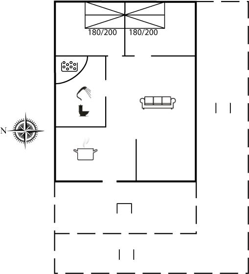 Husets sovepladser er fordelt på 2 værelser med dobbeltseng. Desuden findes der 2 sovepladser på husets hems (madrasser).