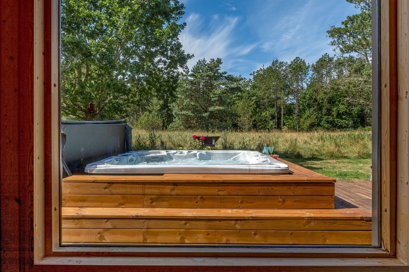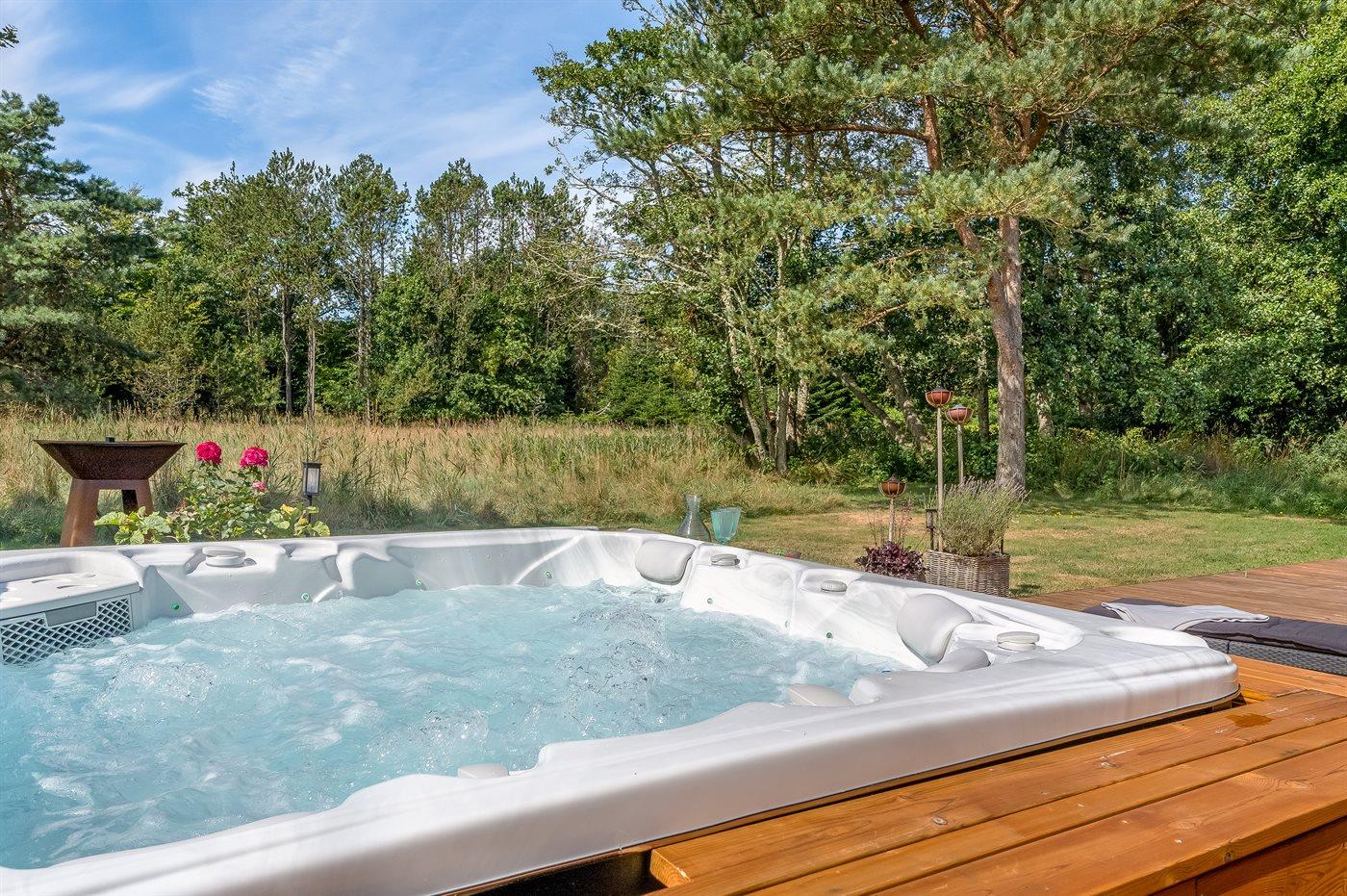 Der er mulighed for afslapning i udendørs standvandsspa til 6 personer.