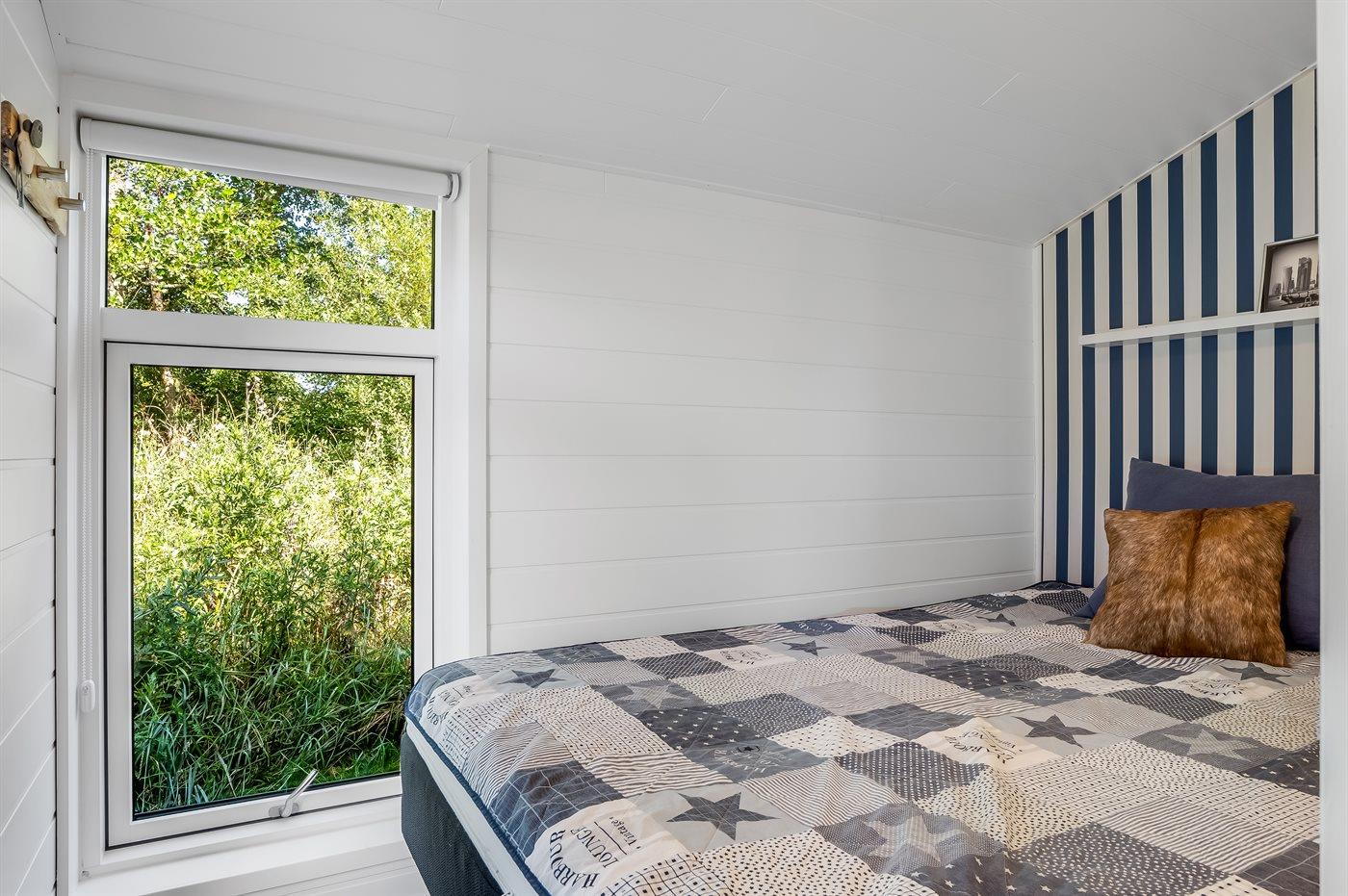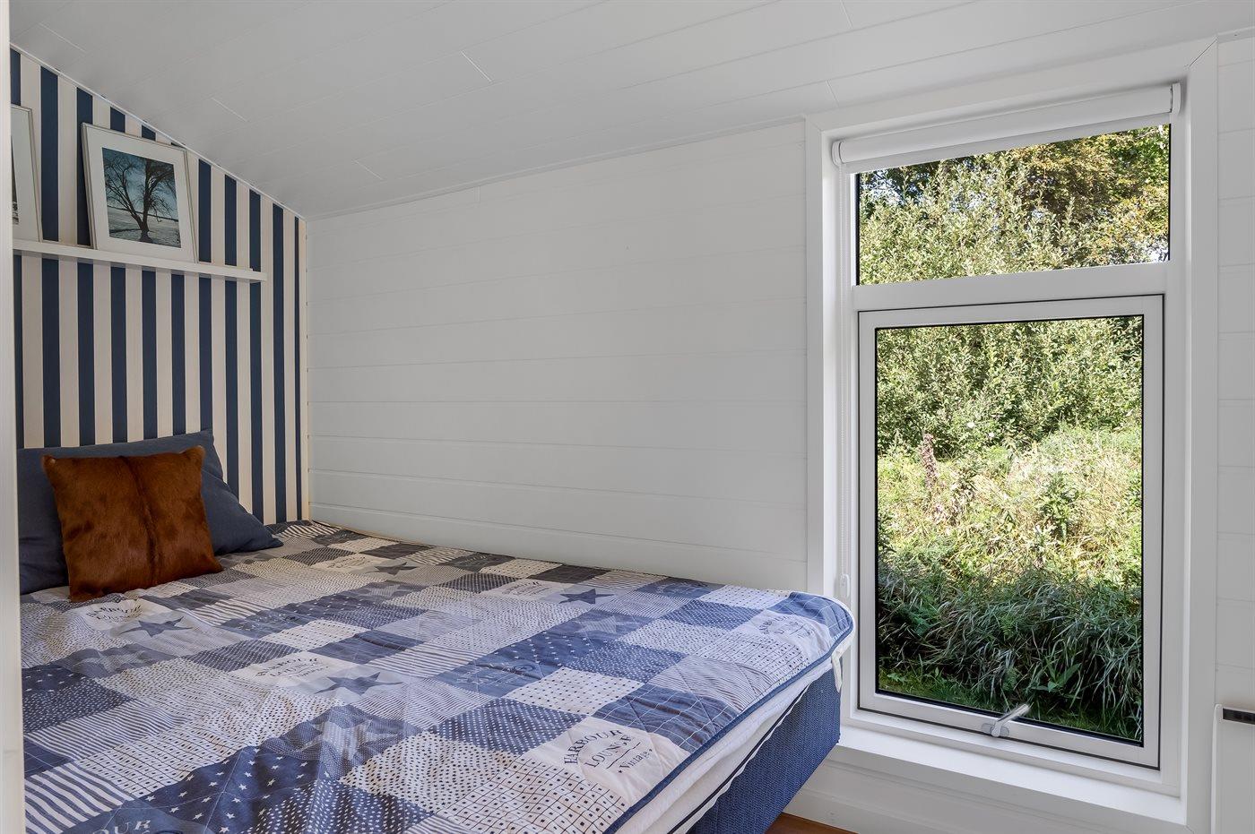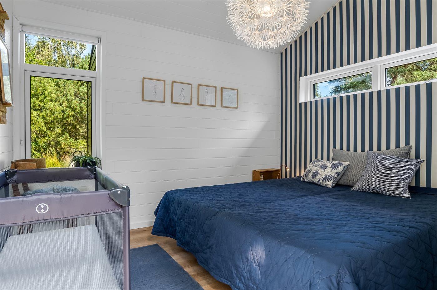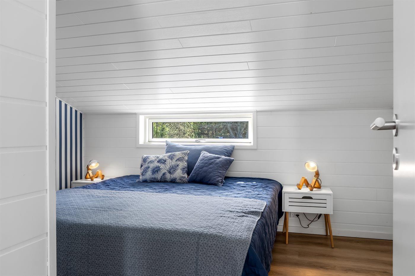 Der er i alt 4 soveværelser. Sovepladserne fordeler sig på: 8 sovepladser i dobbeltsenge. 2 sovepladser på madrasser. 2 af disse sovepladser befinder sig på husets hems. Derudover er der 1 stk. barneseng.