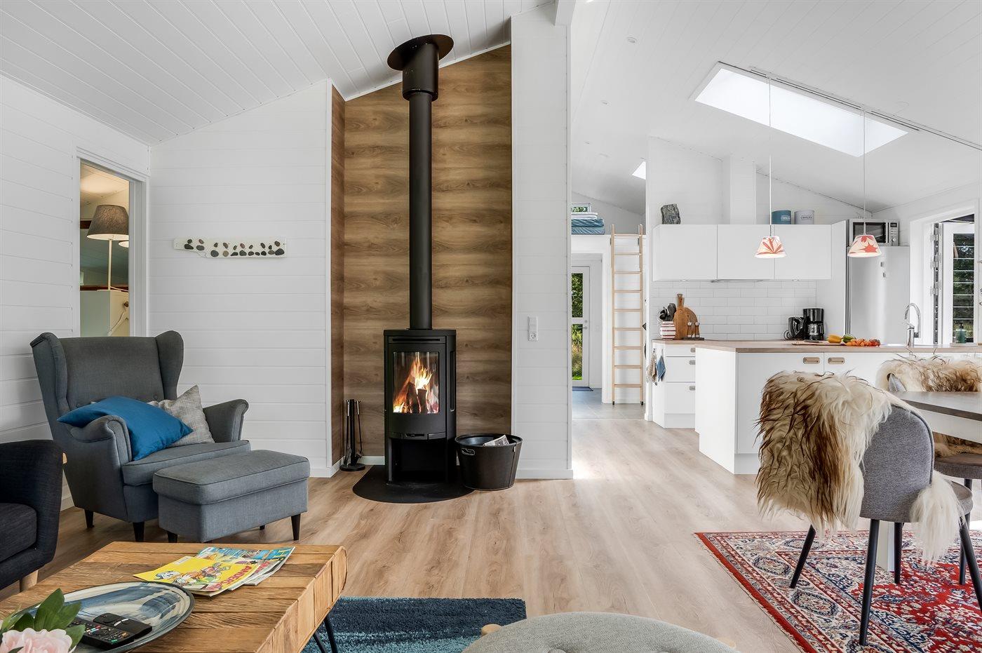 Sommerhuset egner sig til 8 personer samt 1 barn op til 3 år. Ferieboligen er på 110 m² og er bygget i 2017. Det er tilladt at medbringe 2 husdyr. Ferieboligen er udstyret med energibesparende luft til luft varmepumpe. Ferieboligen har vaskemaskine. Frysekapacitet på 60 liter. Der er desuden brændeovn. Til de små er der 1 stk. barnestol.
