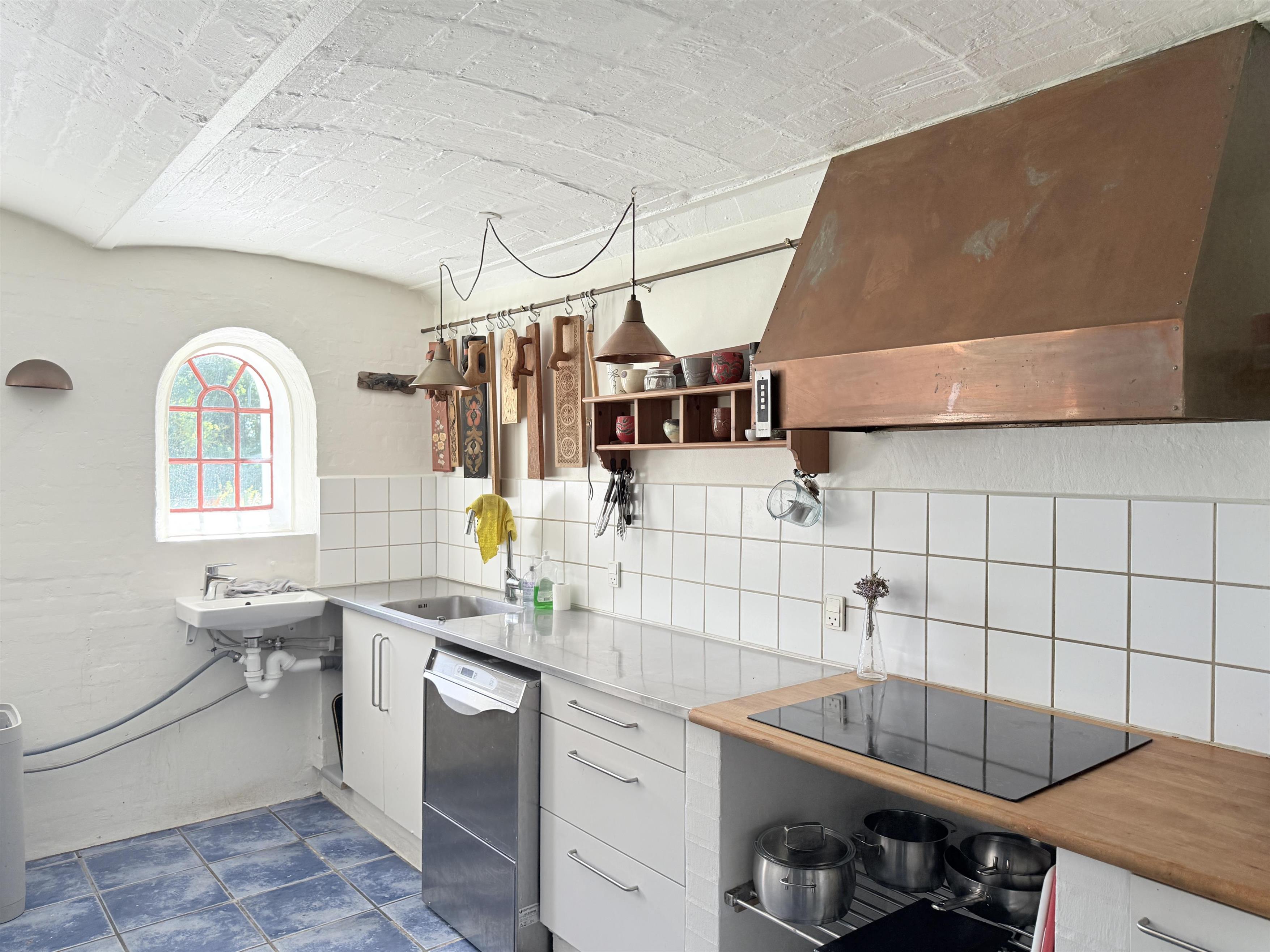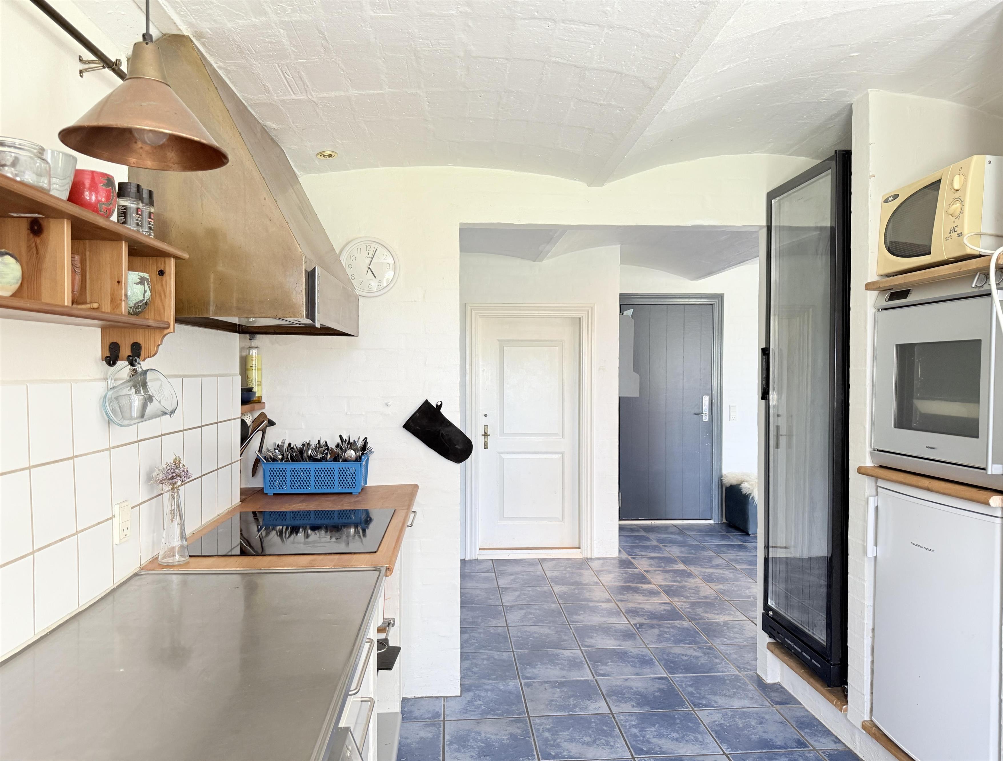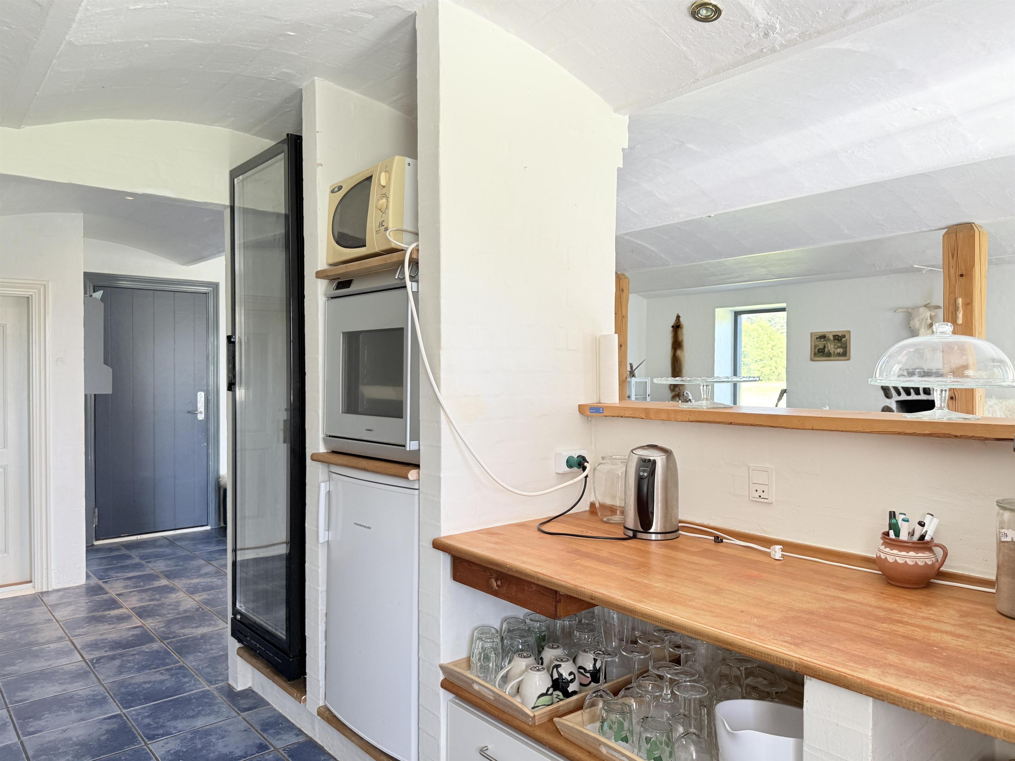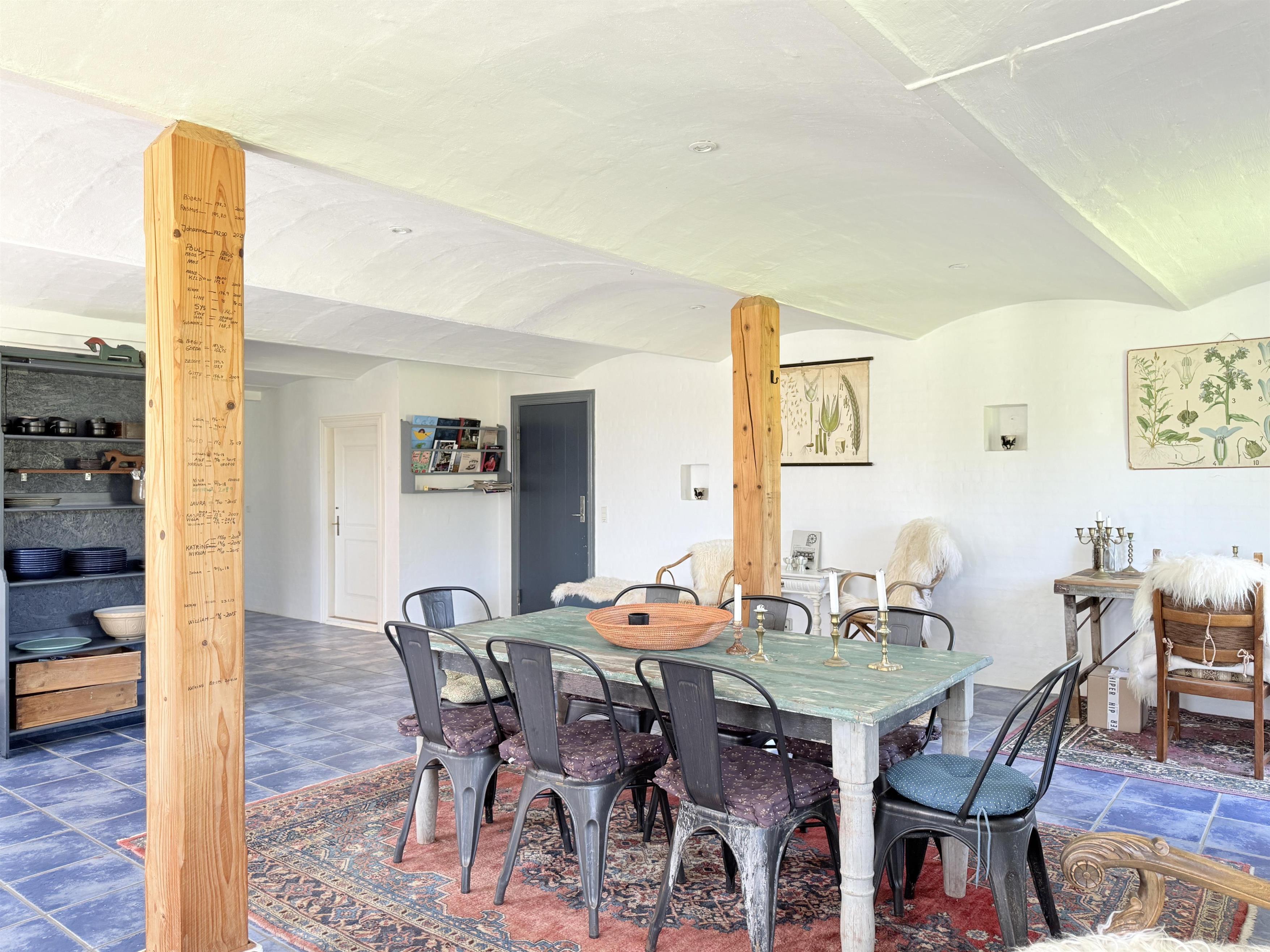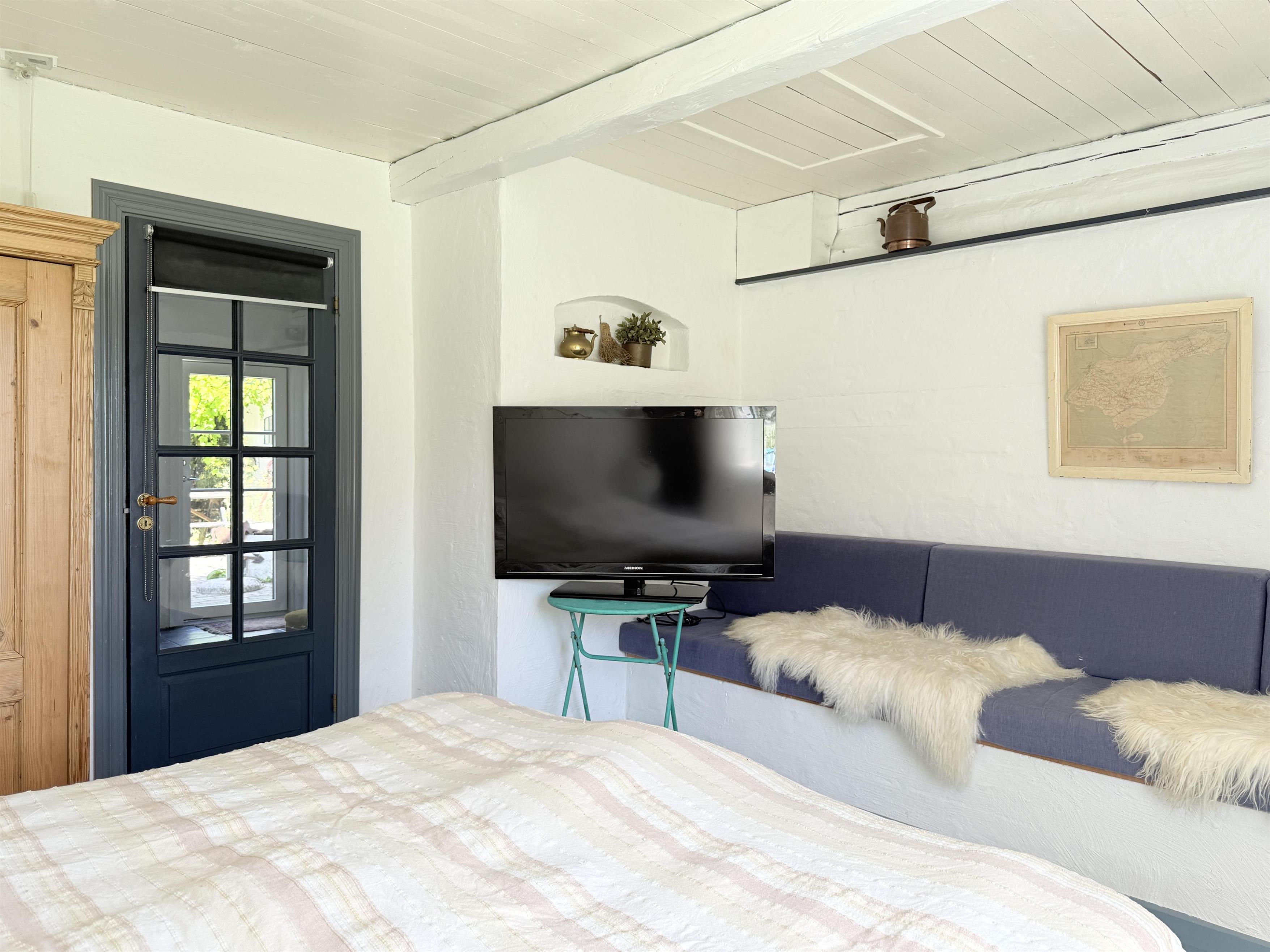 Gården har god plads til familien, og man kan fordele sig på de mange værelser, der er til rådighed. Husets samlingspunkt er den store, hyggelige spisestue med køkken. Her er der mange kroge med behagelige møbler, spiseplads og åbent køkken. Fra spisestuen er der udgang til ny, lækker terrasse med solkroge og dejlig stor have. Den anden længe af gården har tre soveværelser, endnu en spisestue samt et stort, fint badeværelse. Der er to soveværelser med to enkeltsenge, et soveværelse med dobbeltseng samt et ekstra værelse med en enkeltseng. Fra denne længe af gården kan man også gå ud i gårdhaven. Huset er udstyret med hele tre brændeovne, to i hver af stuerne samt i gangen.