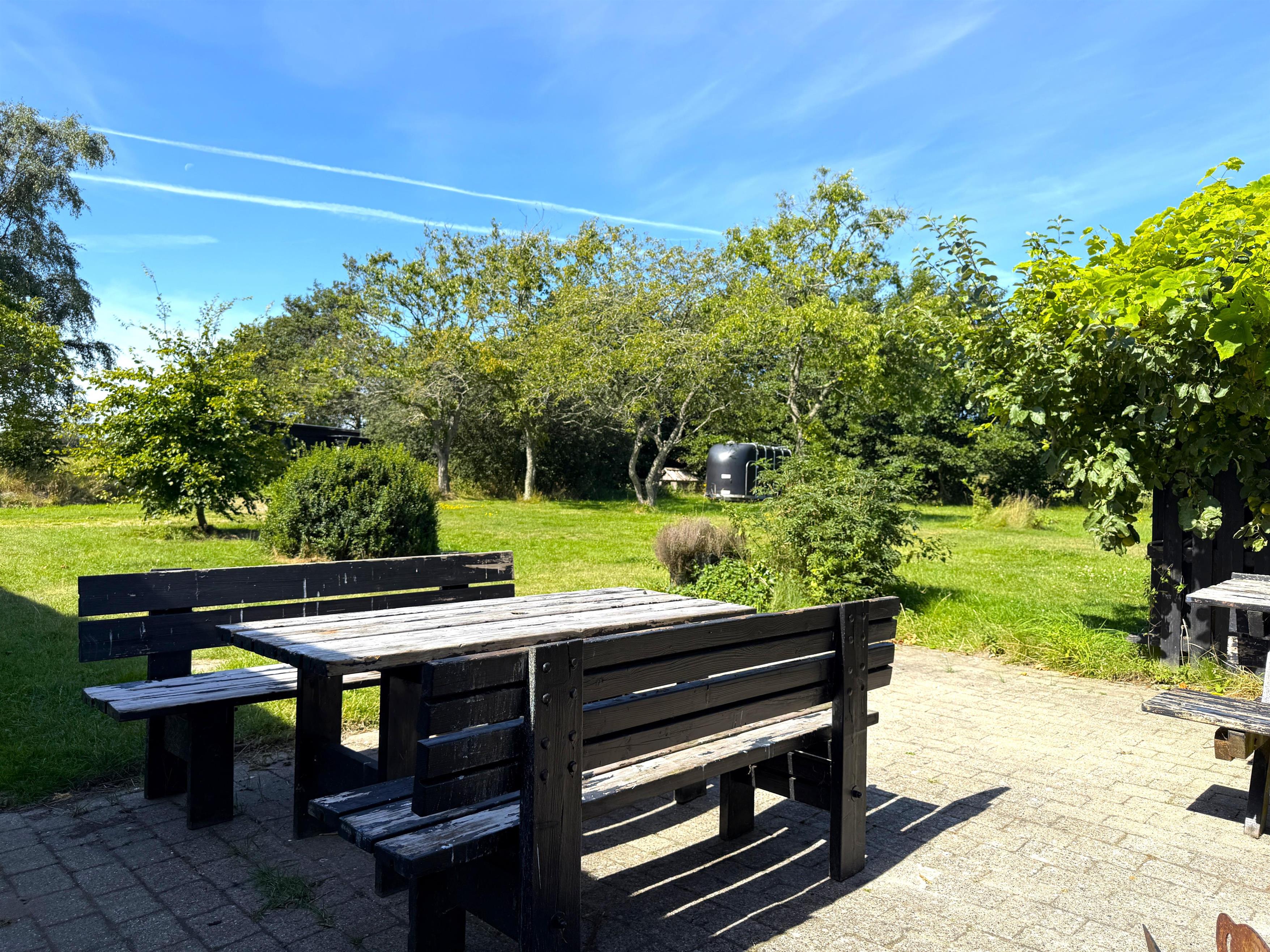 På den 5,5 hektar store grund er der god plads til både store og små, og hunden er også meget velkommen.