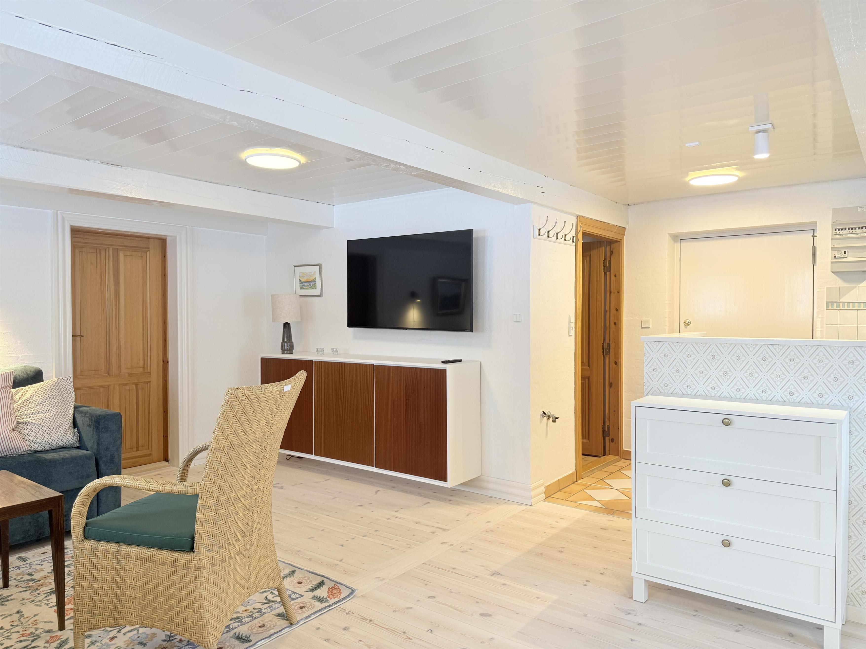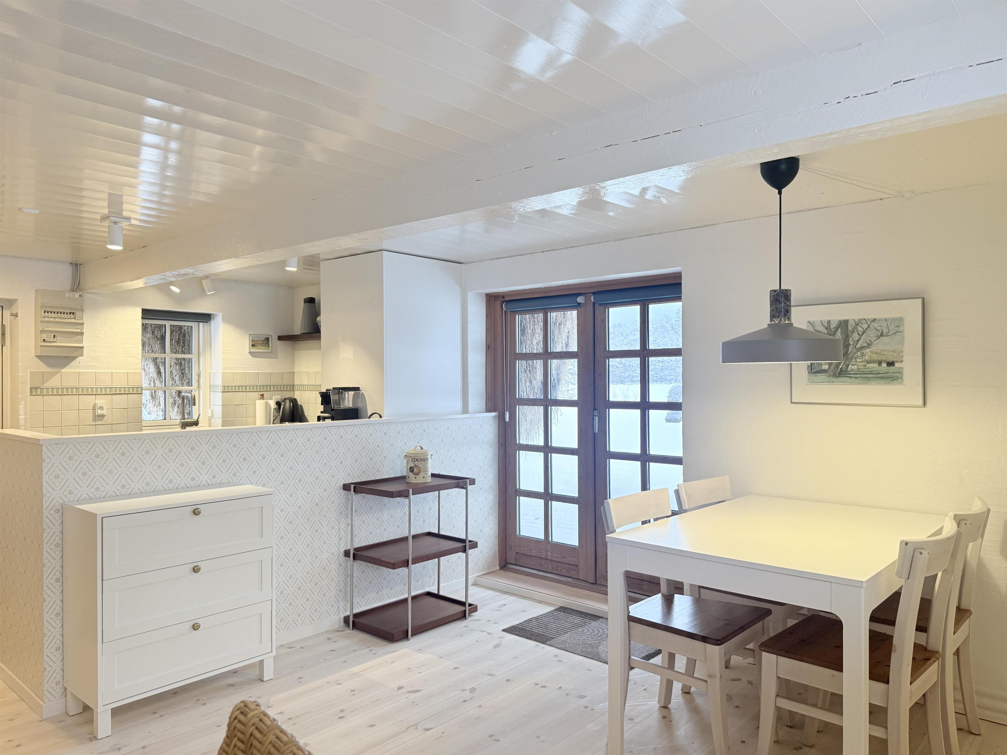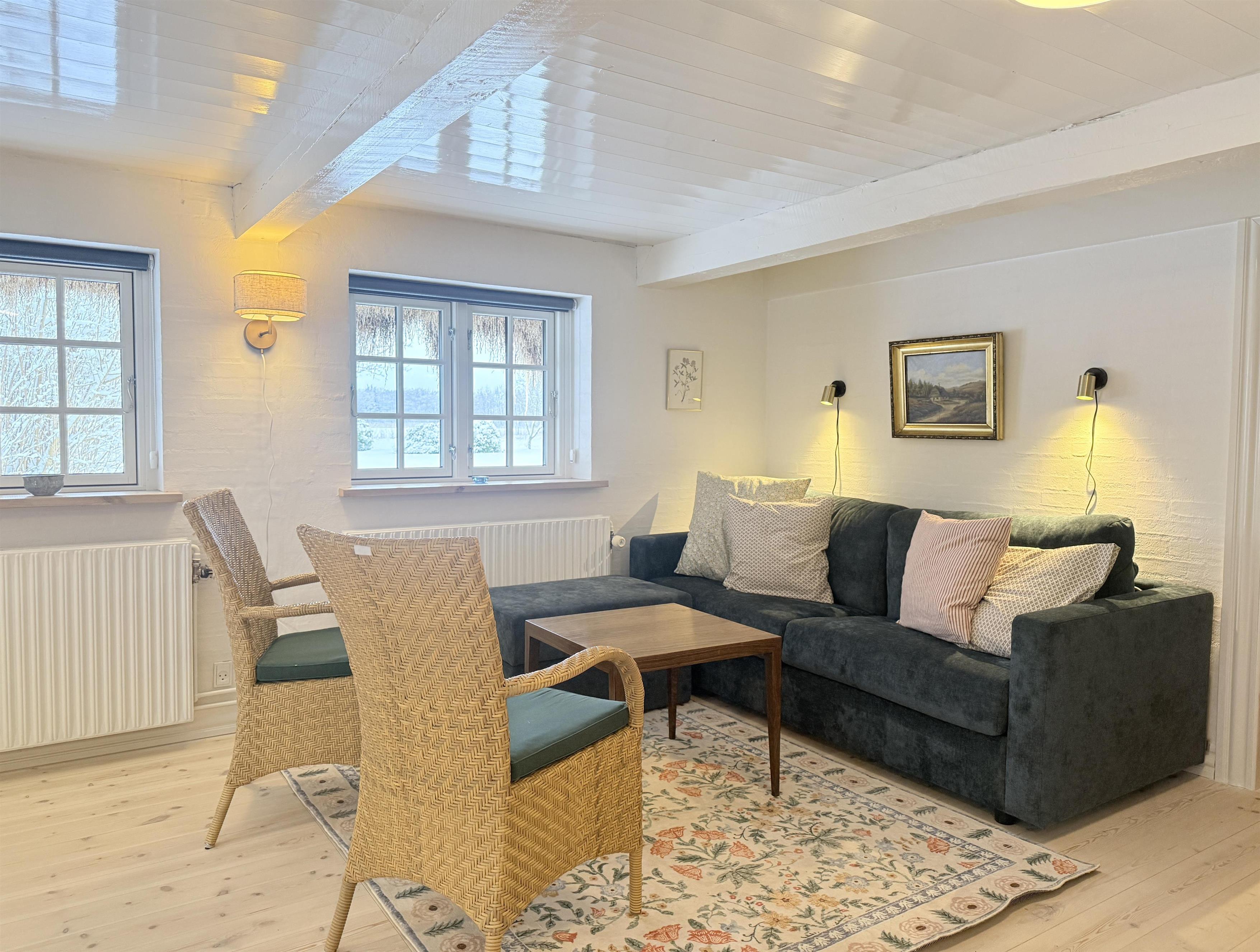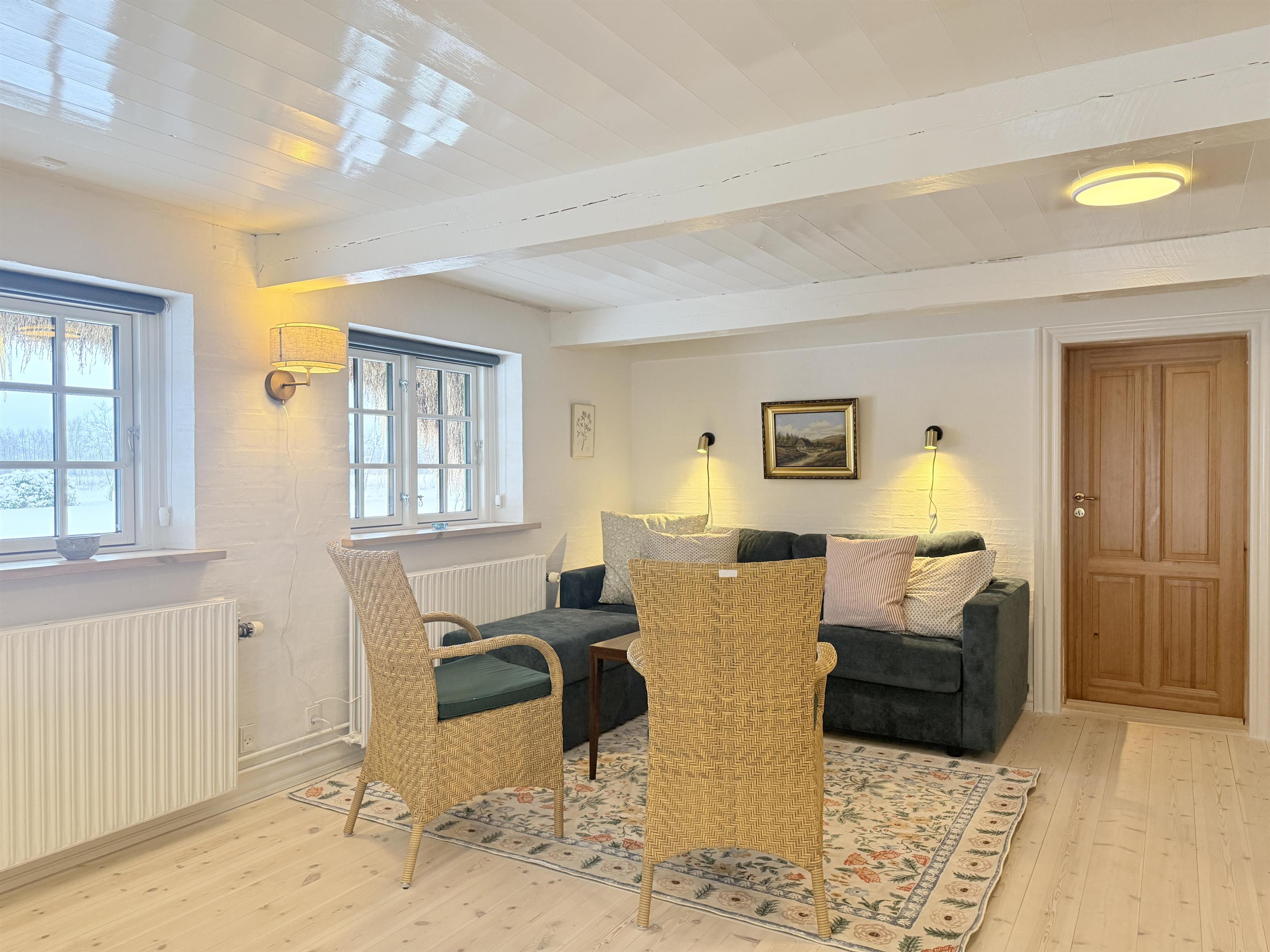 Unik mulighed for at bo i verdens måske længste tanghus – hvor hygge, historie og moderne bekvemmeligheder mødes i naturskønne omgivelser. Fantastisk velbevaret og stilfuldt nyrenoveret Læsøgård, hvor man nu har en enestående mulighed for at prøve at bo under et tangtag og fornemme det unikke klima, som kun metertykke tangtage frembringer. Den nyrenoverede lejlighed, som ligger ugeneret i husets øst-ende, består af et pænt køkken og stue med behagelige møbler, hvor sovesofaen, som er af høj kvalitet, udgør de to ekstra sovepladser. Der er et soveværelse med dobbeltseng og et rigtigt fint og funktionelt badeværelse. Gården ligger velplaceret i ro og idyl med den omgivende hyggelige gamle have og de tilhørende store marker og skove. I haven er der Weber-kuglegrill til fri afbenyttelse. Samtidigt er man tæt på øens hovedstad Byrum med gode handlemuligheder og spisesteder. Her ligger også øens museum placeret. Cykelafstand til det meget smukke vadehavsområde Bovet, eller til øens sydlige naturområde Rønnerne, hvor saltsyderiet lokker med uforglemmelige historier og smagsoplevelser. Nyd en ferie i en af de absolut smukkeste tanggårde på Læsø. - Mærk historien, og mærk samtidig, hvordan stress og jag bliver gjort til historie.