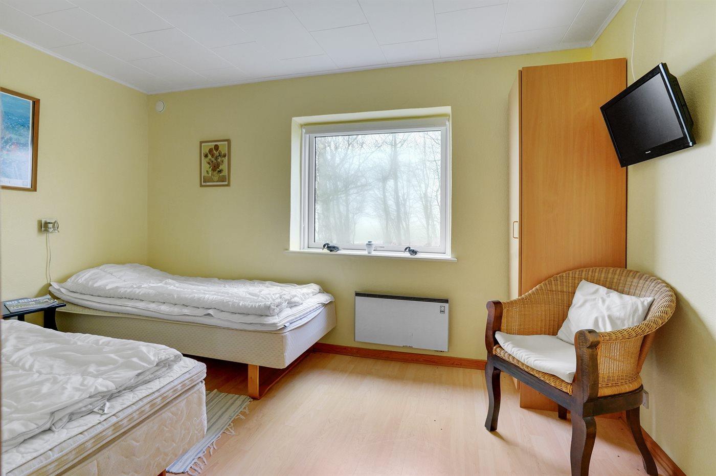Der er i alt 3 soveværelser. Sovepladserne fordeler sig på: 4 sovepladser i dobbeltsenge. 4 sovepladser i enkeltsenge. Derudover er der 1 stk. barneseng.