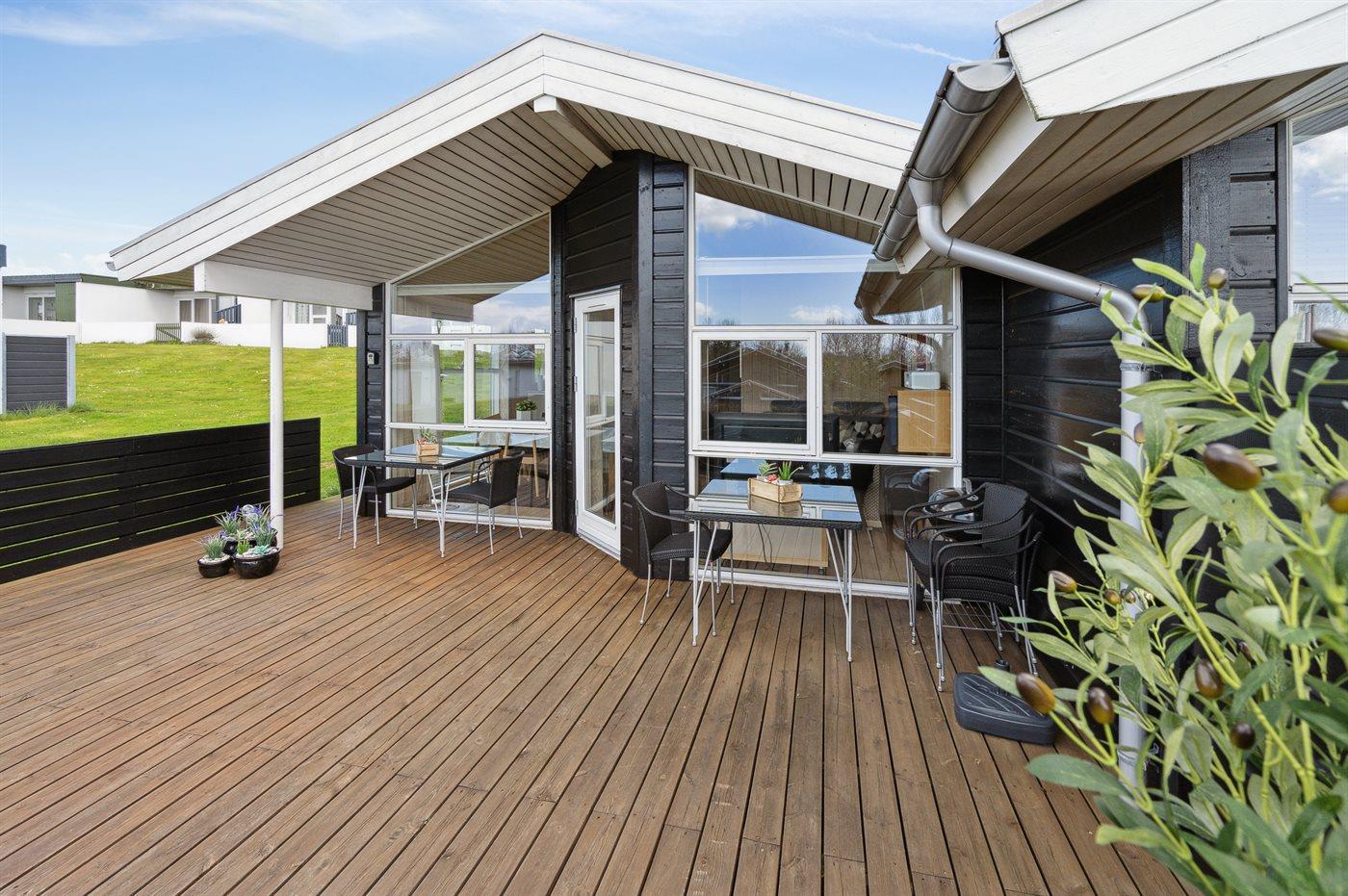 Kun 250 m fra stranden og i gåafstand til den hyggelige marina ligger dette pæne sommerhus (dobbelthus) i Dageløkke Feriecenter. Feriecentret tilbyder gratis aktiviteter for hele familien som f.eks. fælles sportshal med fodbold-, håndbold- og badmintonbaner, motionsredskaber, minigolfbane samt legeplads med hoppepude, trampolin, sandkasse, gynger, legehus mm. Bemærk, at de 2 sovepladser på madrasser befinder sig på husets hems.