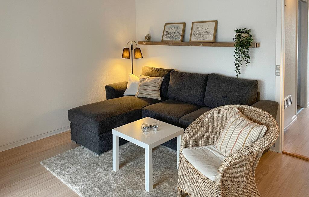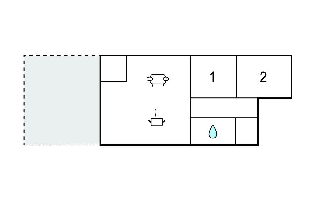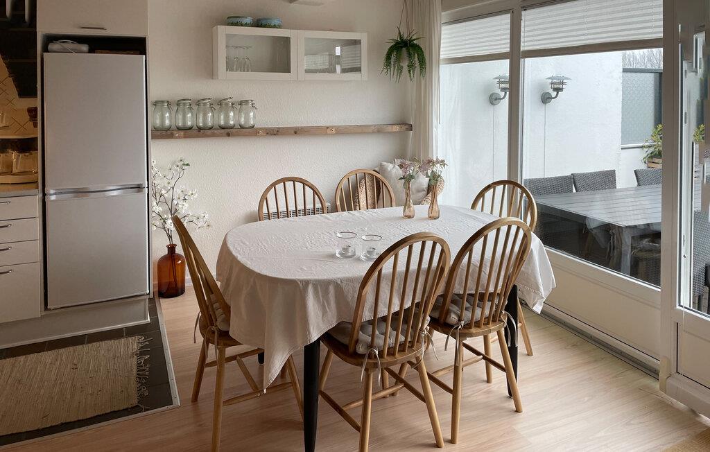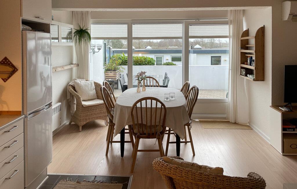 Træd ind i det åbne opholds- og spiseområde, og mærk straks feriestemningen. Tag plads i den hyggelige sofa, og nyd afslappede aftener med udsigt til haven. Den lyse spiseplads indbyder til fælles måltider. Brug det funktionelle køkken til tilberedning af jeres yndlingsretter. Benyt også opholdsrummet til rolige stunder med en bog eller til lange hyggesnakke.