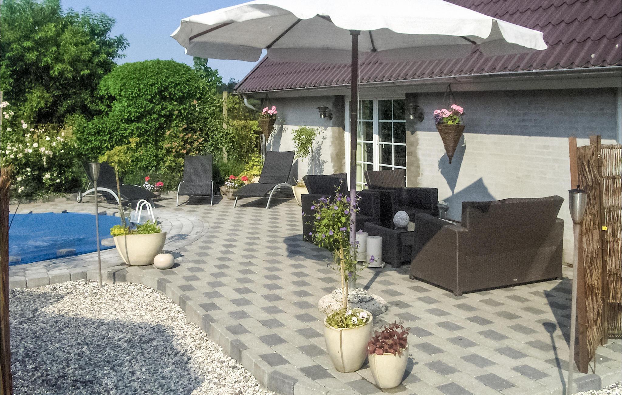 Stilfuldt fritidshus i Dagsvad med privat pool, stor terrasse og udsigt over det smukke landskab.