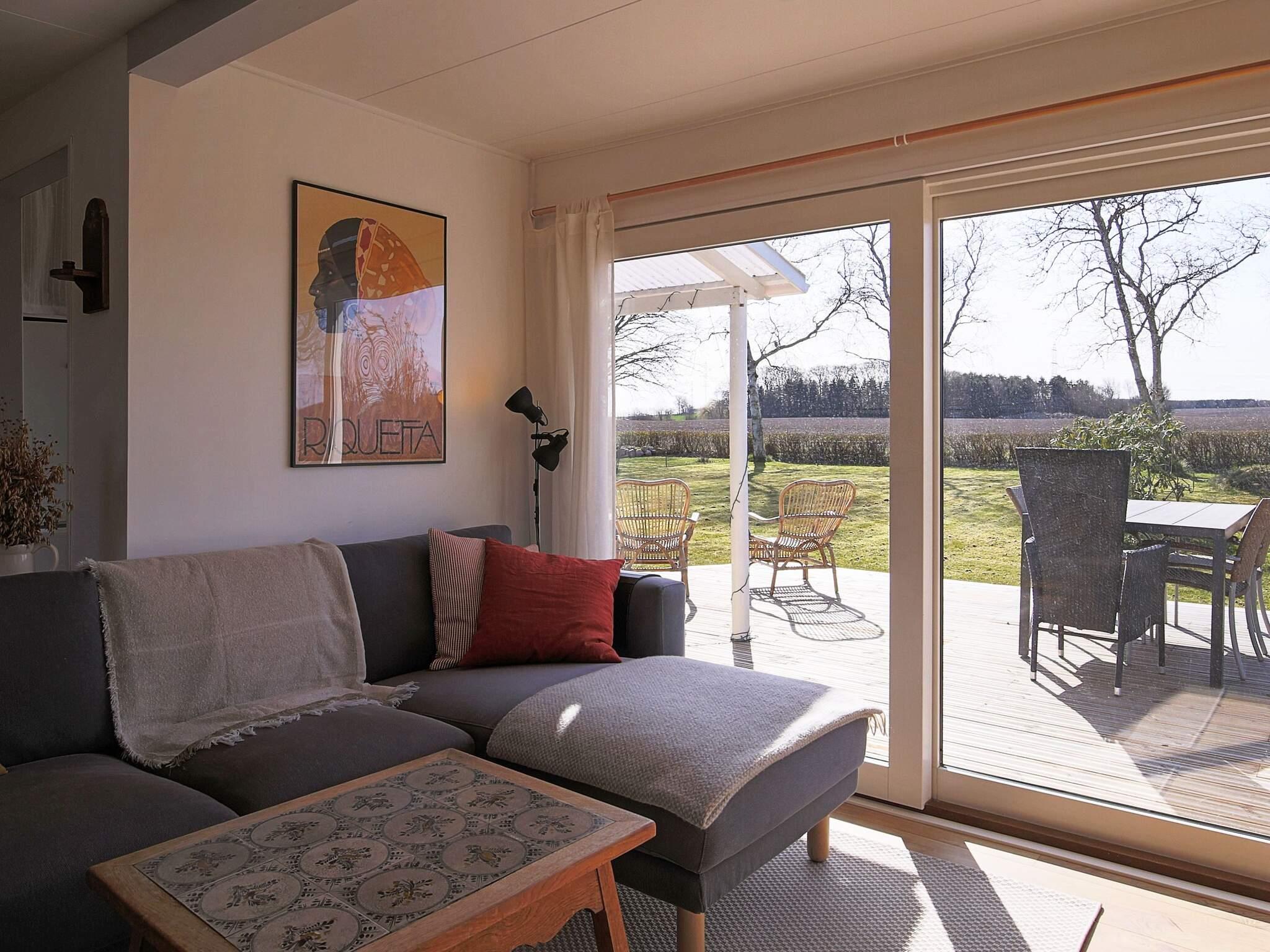 Indenfor byder huset dig velkommen med en praktisk entré, der fører ind til to soveværelser: det ene møbleret med en dobbeltseng og det andet med to enkeltsenge, ideelt til familier eller små grupper. Et lyst og moderne badeværelse er også tilgængeligt. Boligens hjerte er det åbne køkken og opholdsstue, hvor spise- og opholdsrummene skaber hyggelige rammer for fælles måltider og aftener sammen. Herfra har du direkte adgang til den store træterrasse, et vidunderligt sted at slikke solen om dagen eller nyde grillaftenen om aftenen, mens du skuer ud over de brede marker, der strækker sig i det fjerne.
