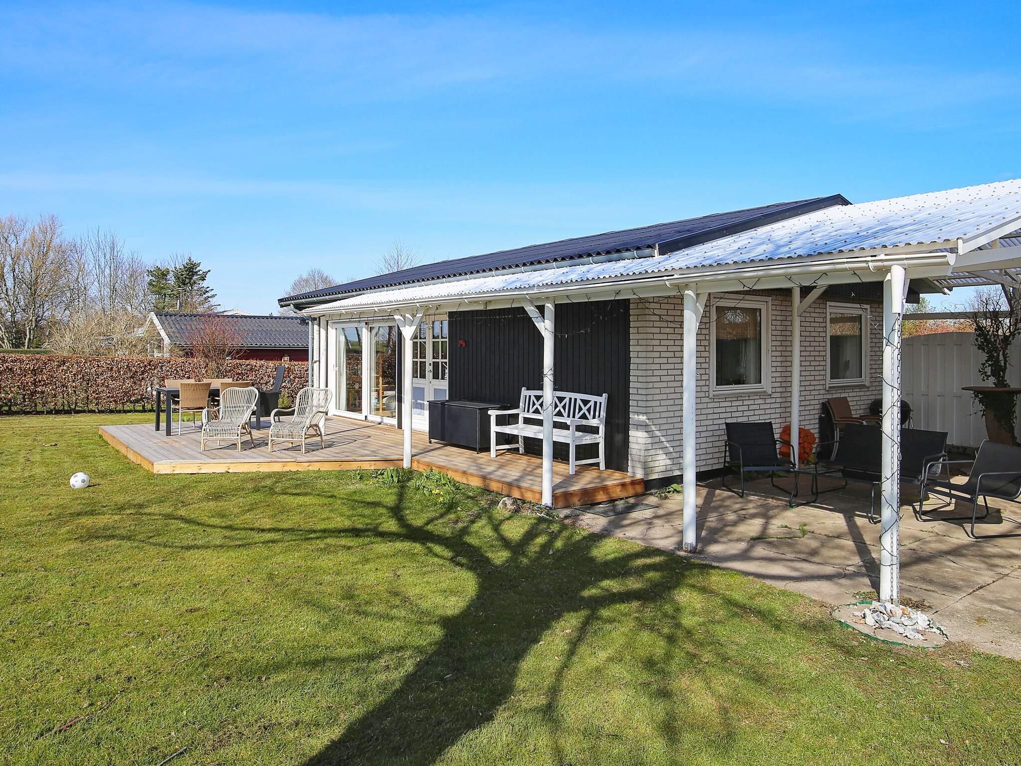 Den rummelige, velholdte have byder på masser af plads til udendørs aktiviteter og afslapning. På den ene side af huset indbyder et overdækket loungeområde til at slå dig ned med en bog eller et glas vin, hvilket gør det til det perfekte sted til lange sommeraftener eller stille stunder i den friske luft.