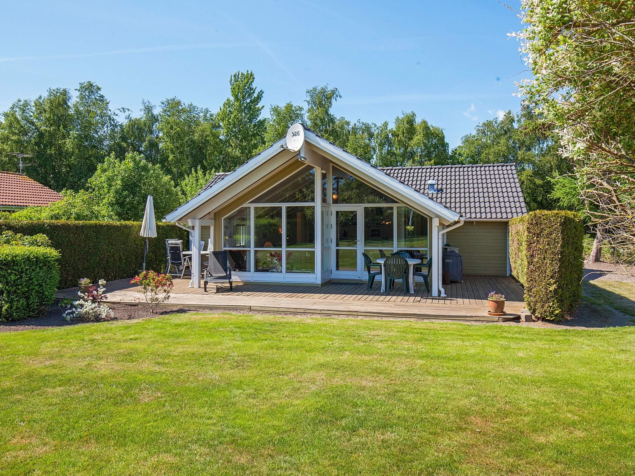 Sommerhus med spabad på naturgrund kun ca. 200 meter fra havet ved Dalby Strand. Til huset hører åben såvel som overdækket terrasse med havemøbler. Der er lyse trævægge og -lofter. Trægulve med delvist løse tæpper. Huset er indrettet med badeværelse med gulvvarme, bruseniche samt 2-personers spabad. Moderne, veludstyret, åbent køkken i forbindelse med stuen med bl.a. fryser, opvaskemaskine, mikroovn, varmluftovn og komfur med keramiske kogeplader. Der er stor opholdsstue indrettet med stort glasparti, som gør stuen dejlig lys. Stuen er bl.a. udstyret med klimaanlæg, tv, video samt stereoanlæg med cd-afspiller. Husets sovepladser er fordelt på tre soveværelser. I det lille bryggers er der vaskemaskine. Udlejes ikke til ungdomsgrupper.