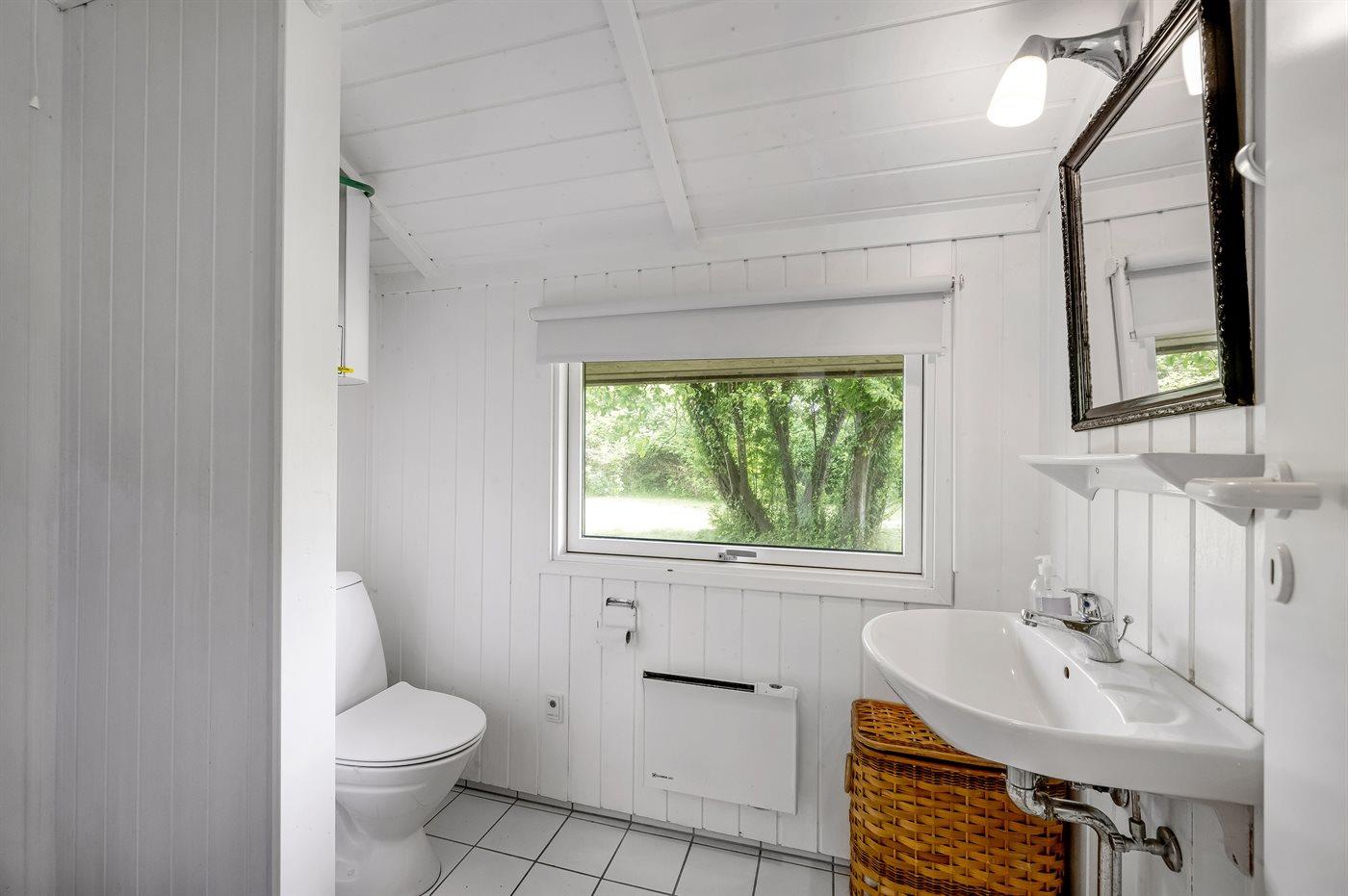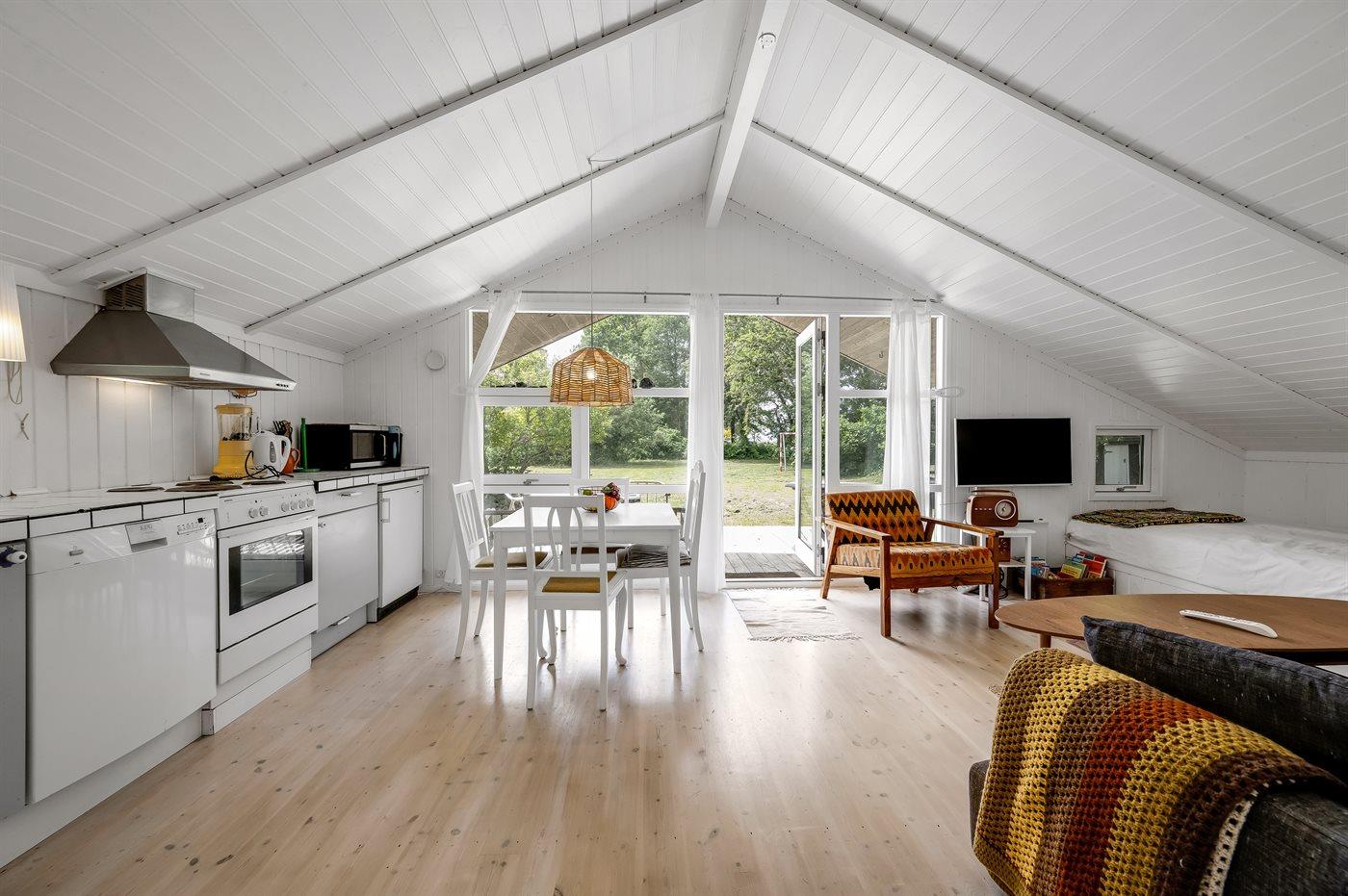 Huset er lyst med et åbent køkken i forbindelse med spiseplads og stue, og herfra er udgang til den overdækkede terrasse og haven. Der er 1 soveværelse med dobbeltseng og en alkove i stuen med 2 sovepladser. Badeværelset er med bruseniche og gulvvarme.