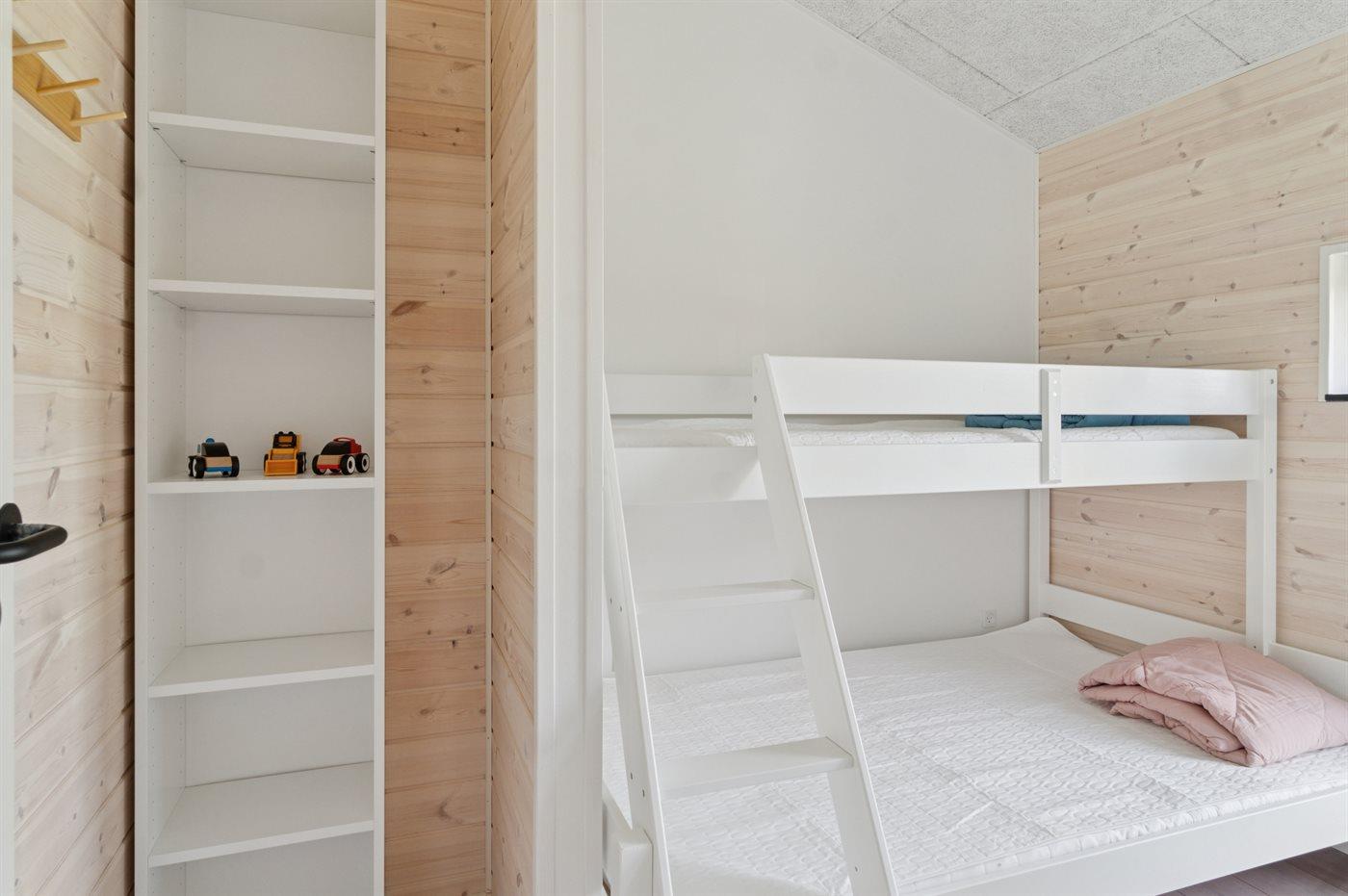 Der er i alt 3 soveværelser og en hems. I de 2 af soveværelserne er der dobbeltsenge. I det tredje soveværelse er en køjeseng, hvor den øverste køje er 80 cm. bred og den nederste 120 cm. Der er desuden 2 madrasser på hemsen. I det praktiske bryggers er der vaskemaskine og tørretumbler samt gulvvarme.