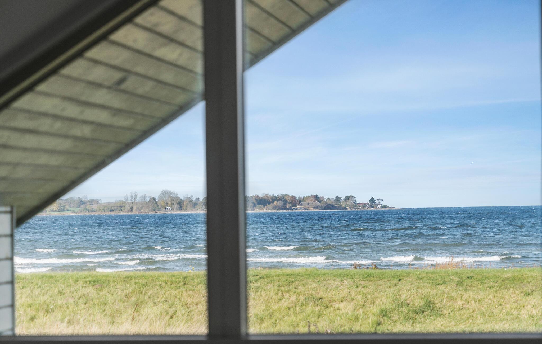 Dejligt feriehus ved Dalby Bugt med panoramaudsigt over vandet og direkte adgang til stranden.