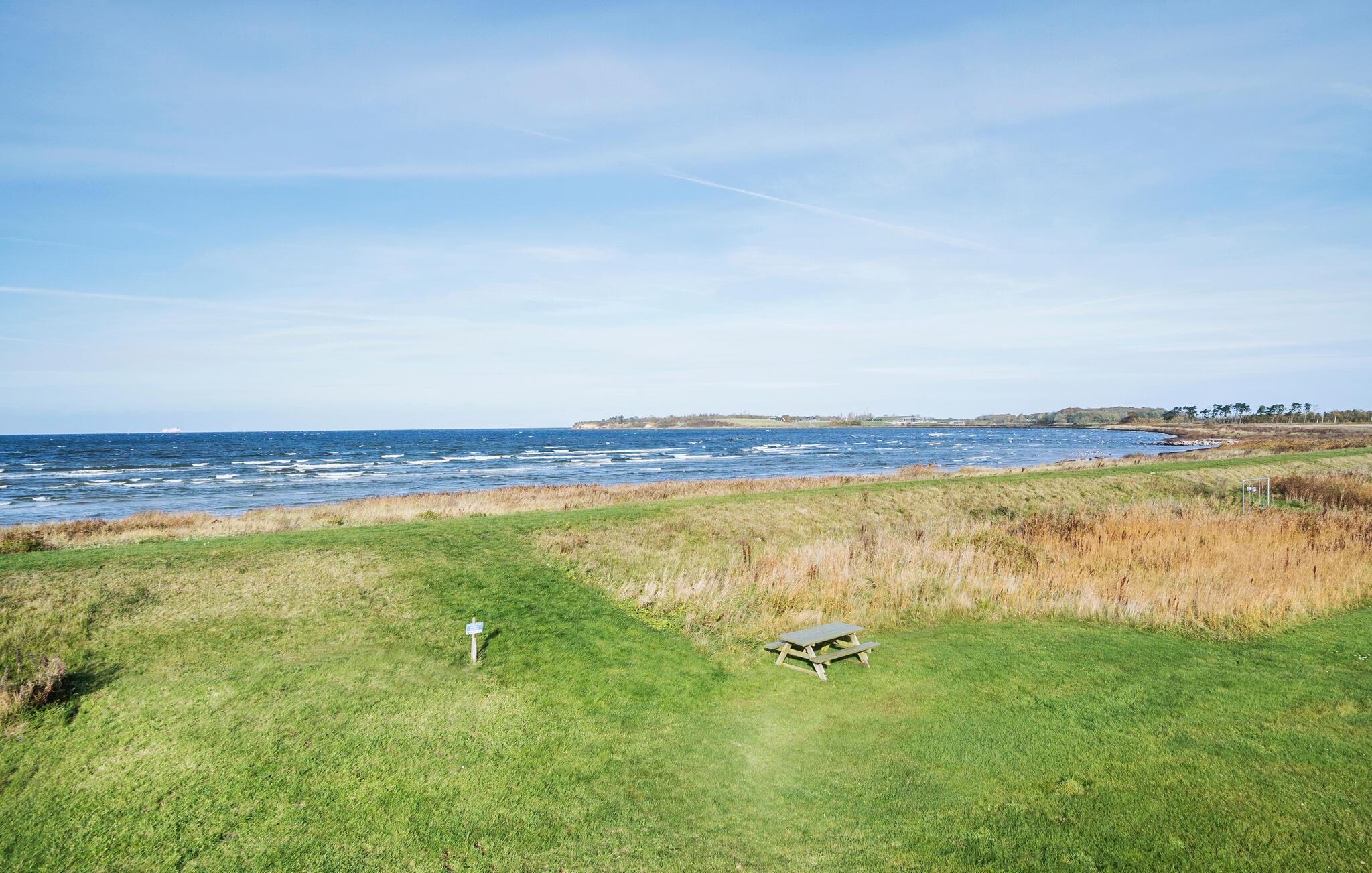 Direkte ved vandet tilbyder dette feriehus ved Dalby Bugt en ideel beliggenhed for afslappende dage og skønne naturoplevelser. Nyd morgenen på den overdækkede terrasse, hvorfra I har direkte udsigt over havet. Terrassen er udstyret med behagelige siddepladser og et spiseområde og indbyder til at starte dagen med en hyggelig morgenmad. I dette feriehus kan man virkelig finde ro.