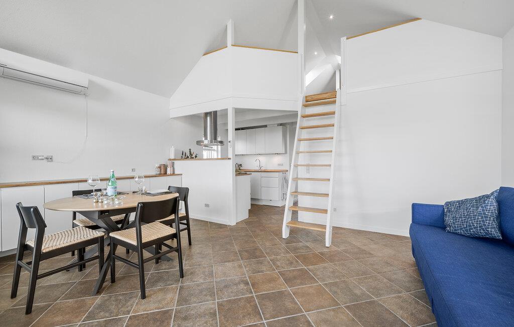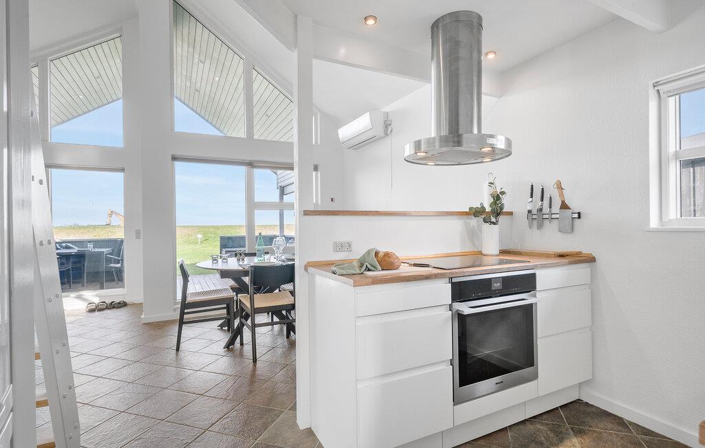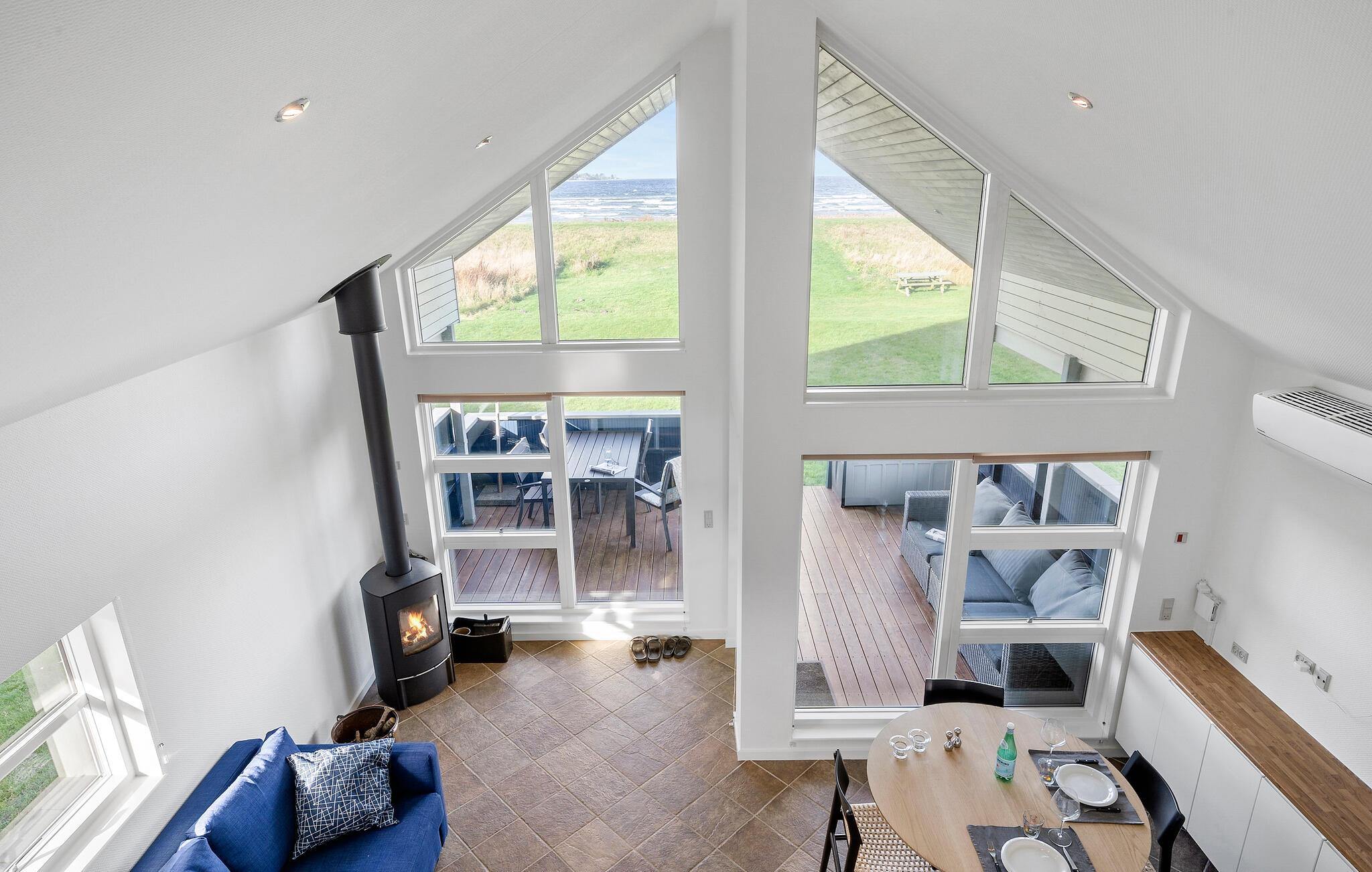 Inde i huset venter en åben stue med højt til loftet og store vinduer, der lukker masser af lys ind og giver en bred udsigt over omgivelserne. Slap af på sofaen ved brændeovnen og lad den afslappende atmosfære påvirke jer. Det moderne køkken har alt, hvad I behøver til at tilberede lækre måltider.