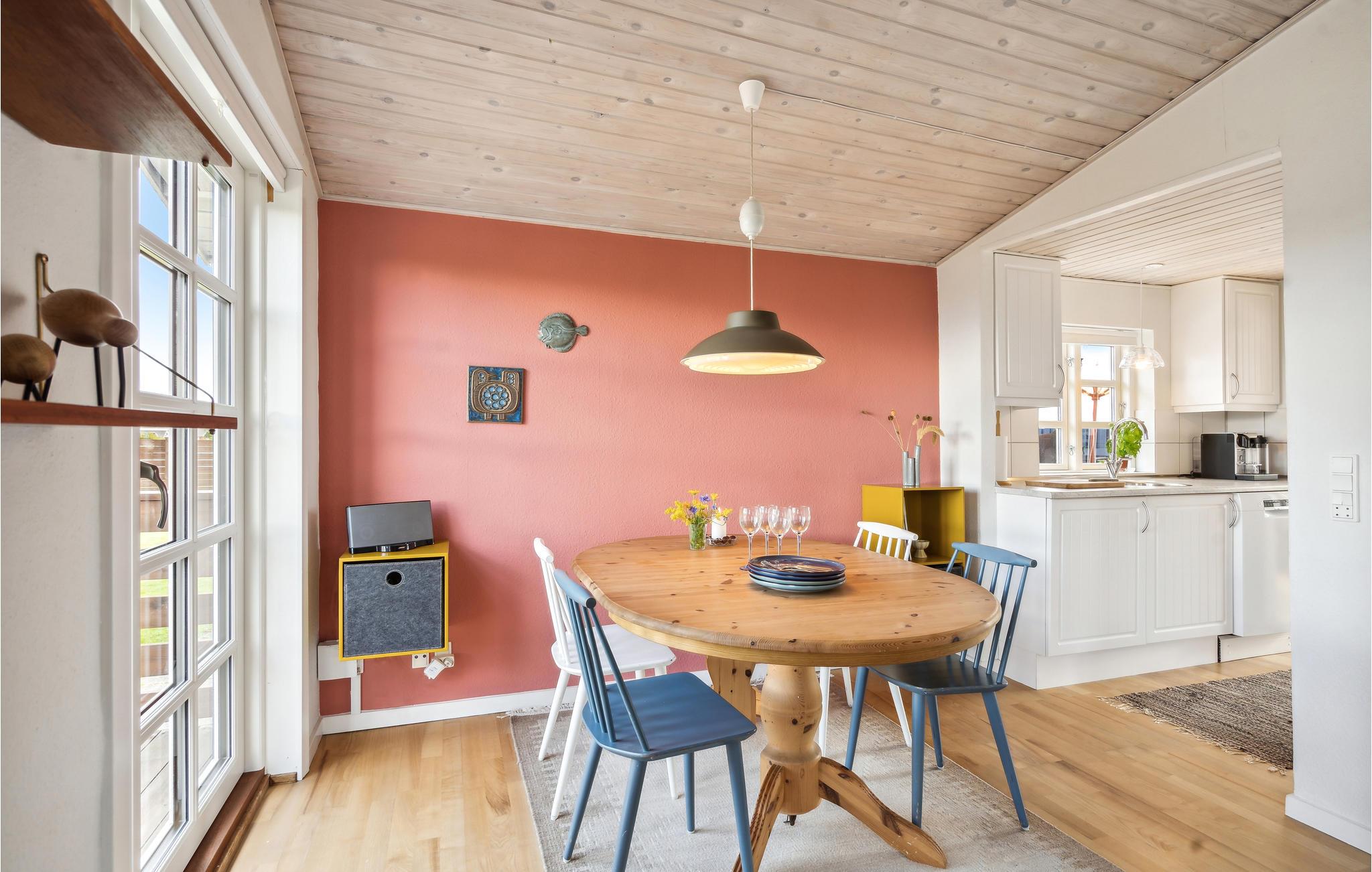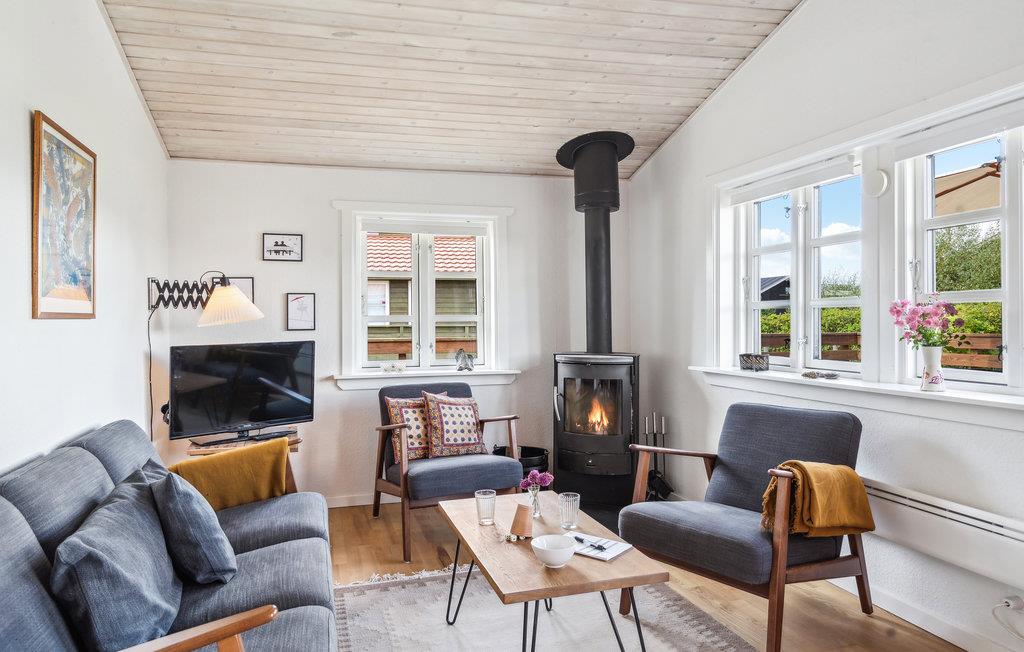 I det charmerende, nordøstlige hjørne af Fyn byder dette indbydende feriehus jer velkommen. Det veludstyrede interiør er indrettet med omtanke for både æstetik og funktionalitet og gør et varmt, personligt indtryk – her får I altså den perfekte ramme for en hyggelig ferie med familien. Nyd lækre måltider omkring spisebordet og varm jer på kølige dage foran brændeovnen til lyden af flammernes knitren.