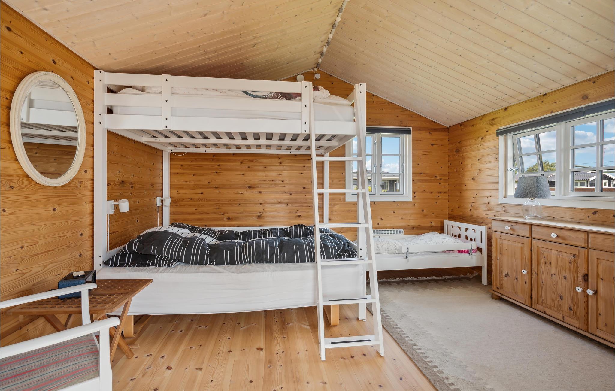 Soveværelse (nr. 1) - 2 Sovepladser. (Dobbeltseng(e)). 1 Soveplads. (Etageseng(e)).