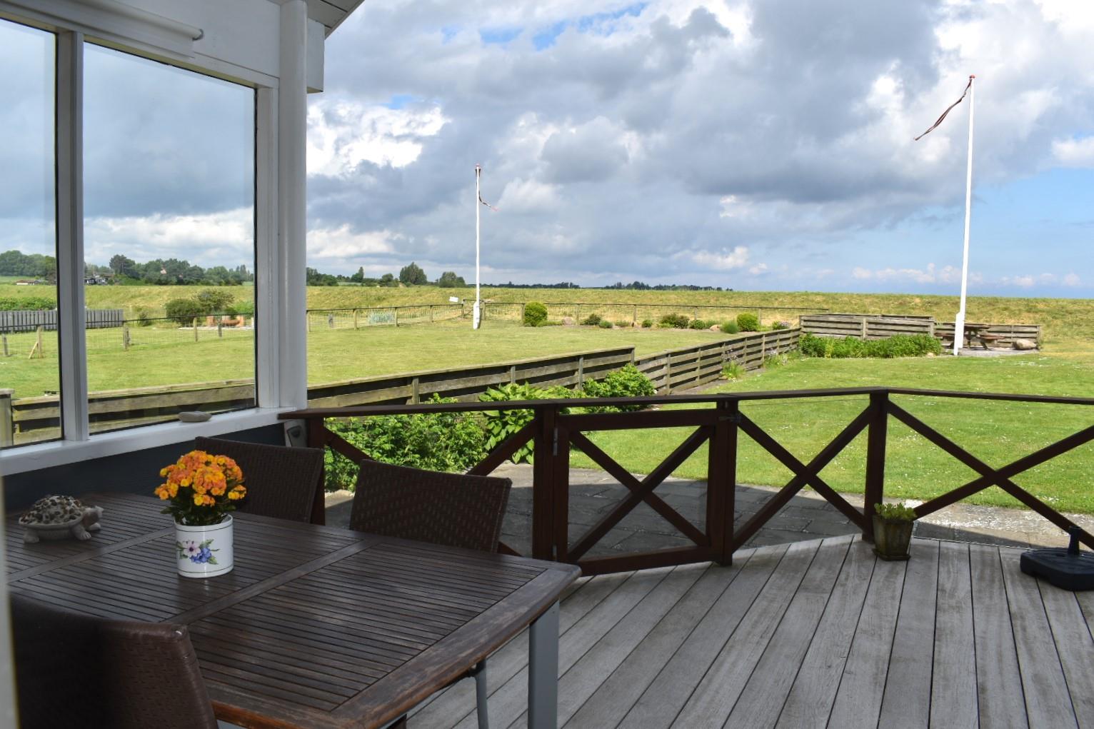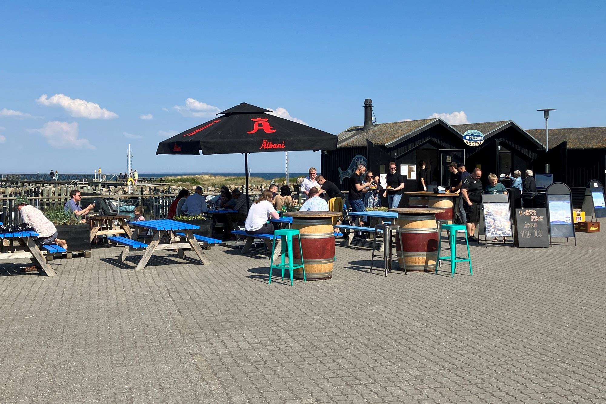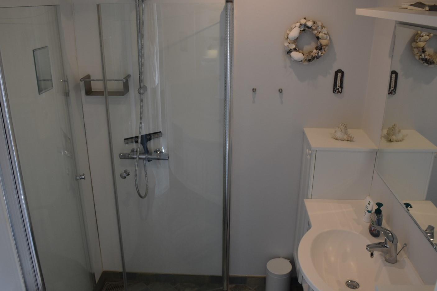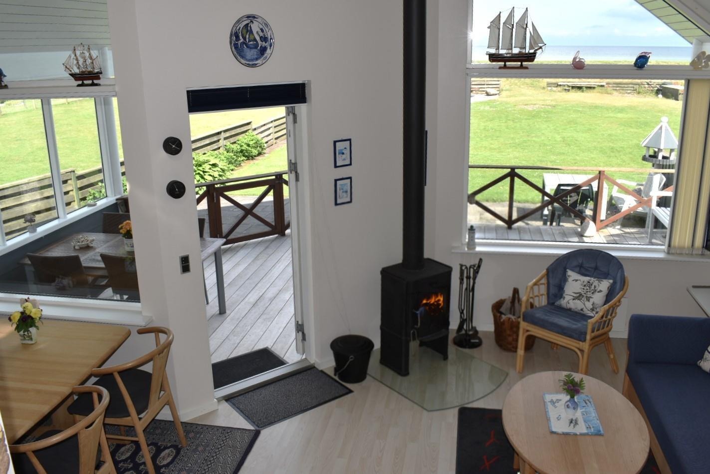 Fra stuen træder du ud på en delvis overdækket og afskærmet terrasse med en fantastisk udsigt over vandet, hvor du kan nyde aftensmaden eller et glas vin. Foran huset finder du en lukket terrasse, der er perfekt til morgenkaffen og formiddagssolen. En afskærmet udebruser gør det nemt og praktisk at skylle sandet af efter en dag på stranden.
