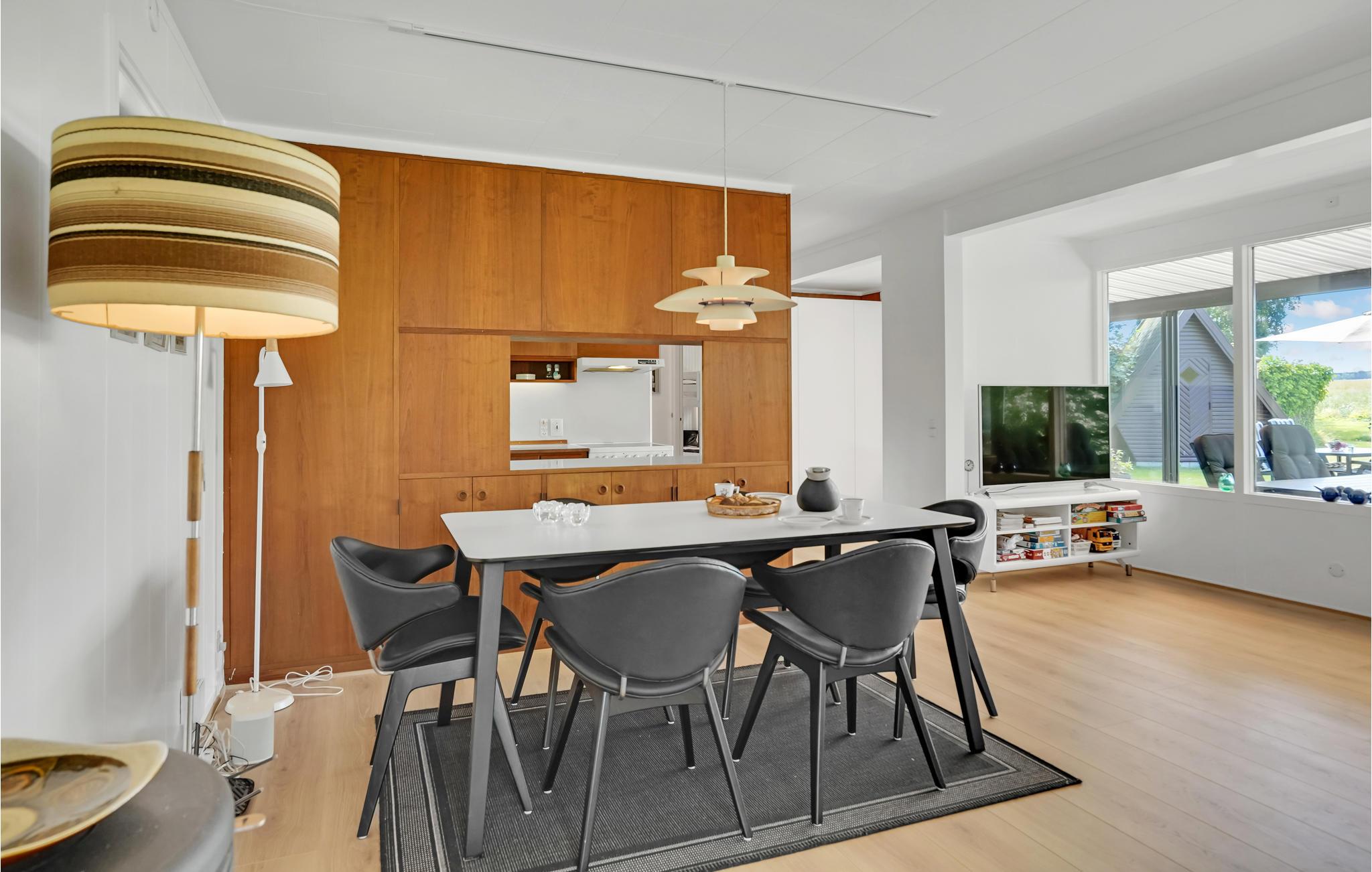 Ikke langt fra den maleriske Isefjord ligger dette skønne feriehus, som har en rolig beliggenhed. Huset er indrettet med et flot og moderne køkken og er stilrent indrettet med gedigne materialer. Der er legetøj til rådighed, så de små kan brede sig i stuen, ligesom I kan arrangere hyggelige brætspilsaftener rundt om spisebordet. Selv på kølige dage er udestuen en skøn oase til afslappende læsetimer eller hyggelige måltider med udsigt til det grønne.