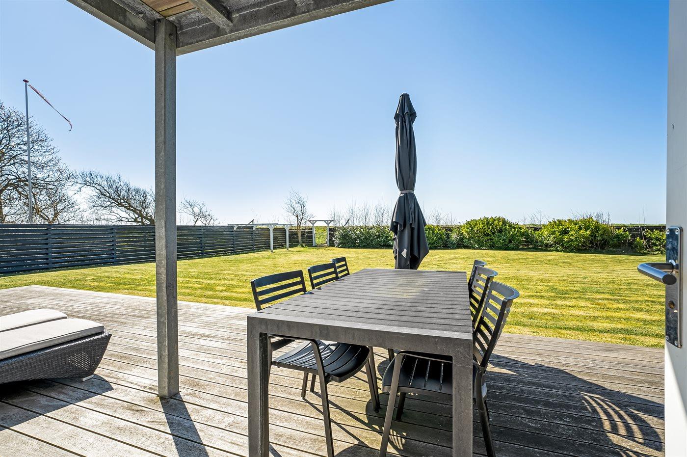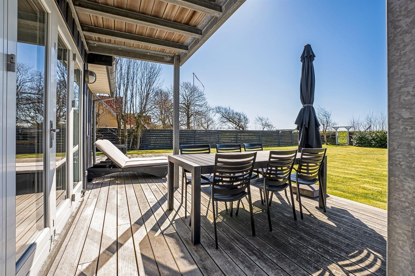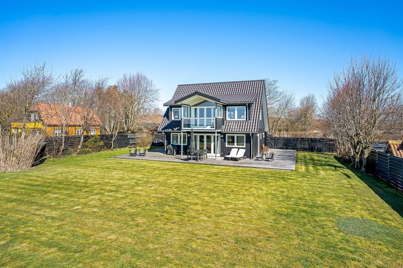 Husets dejlige, store græsplæne og det store terrasseområde indbyder til leg og hygge i det fri.