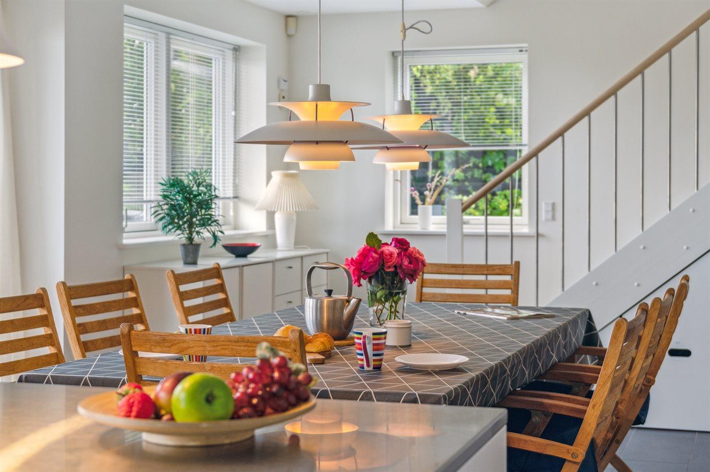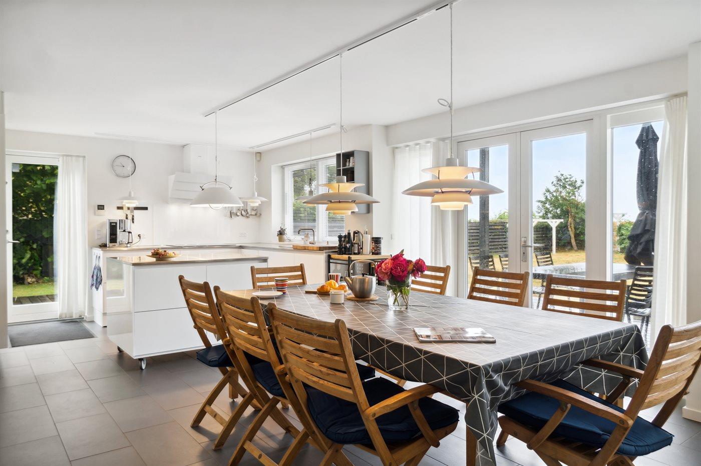 Køkkenet er udstyret med 1 køleskab. Der er 4 induktionskogeplader, varmluftovn Kombineret miniovn og mikrobølgeovn. samt opvaskemaskine.