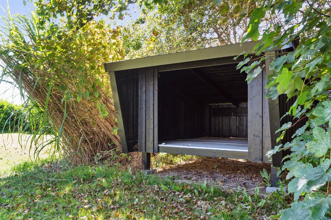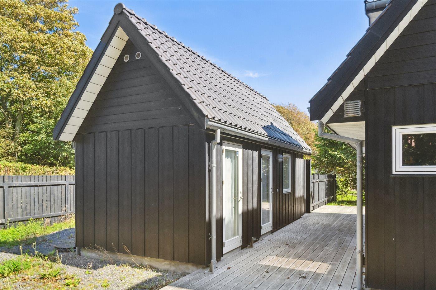 Ferieboligen er beliggende på en 849 m² stor havegrund. Der er 30 m til havet. Der er en badebro i nærheden. Nærmeste forretning er beliggende i en afstand af 5100 m. Til ferieboligen hører 150 m² terrasseareal. Udgang til altan. Bålsted. Shelter. Udendørs bruser. Grill til rådighed. Parkering ved ferieboligen.