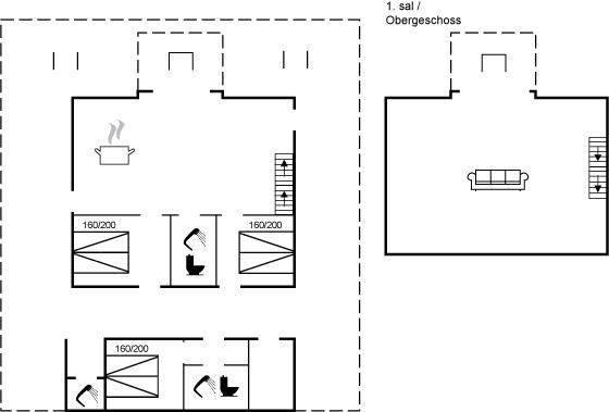 Der er i alt 3 soveværelser. Sovepladserne fordeler sig på: 8 sovepladser i dobbeltsenge. 2 af disse sovepladser befinder sig i et anneks og 2 af dem befinder sig i opholdsstuen. Derudover er der 1 stk. barneseng.