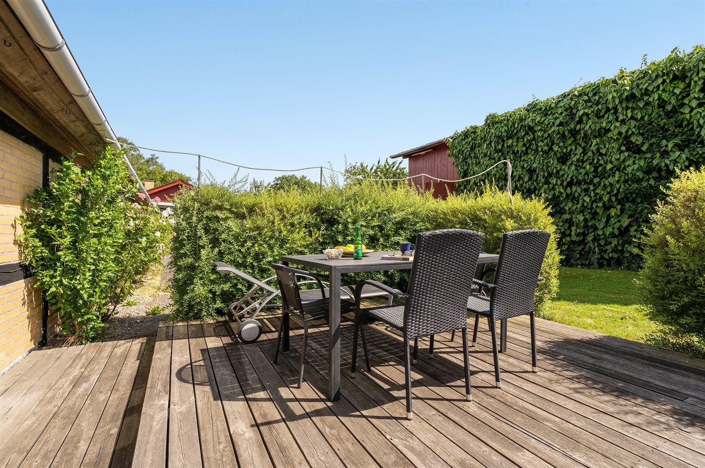 Ferieboligen er beliggende på en 1229 m² stor havegrund. Grunden er indhegnet. Der er 9000 m til havet. Nærmeste forretning er beliggende i en afstand af 6900 m. Til ferieboligen hører åbent terrasseareal. Sandkasse. Bålsted. Parkering ved ferieboligen.