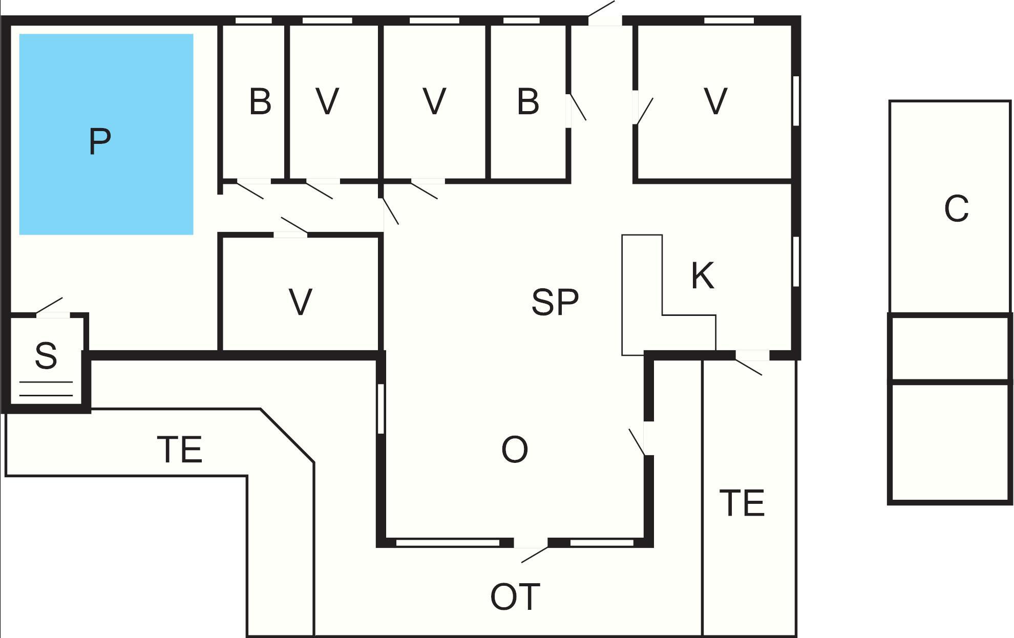Huset byder på en separat afdeling med swimmingpool, her kan hele familien få masser af timer til at gå. Derudover indeholder huset en sauna, der bløder musklerne op efter en lang og aktiv dag.