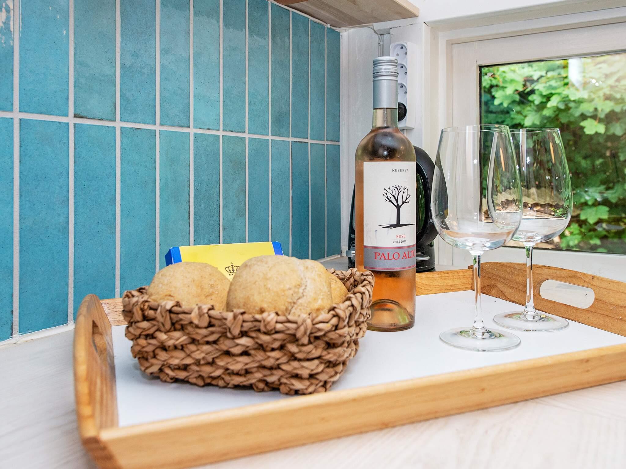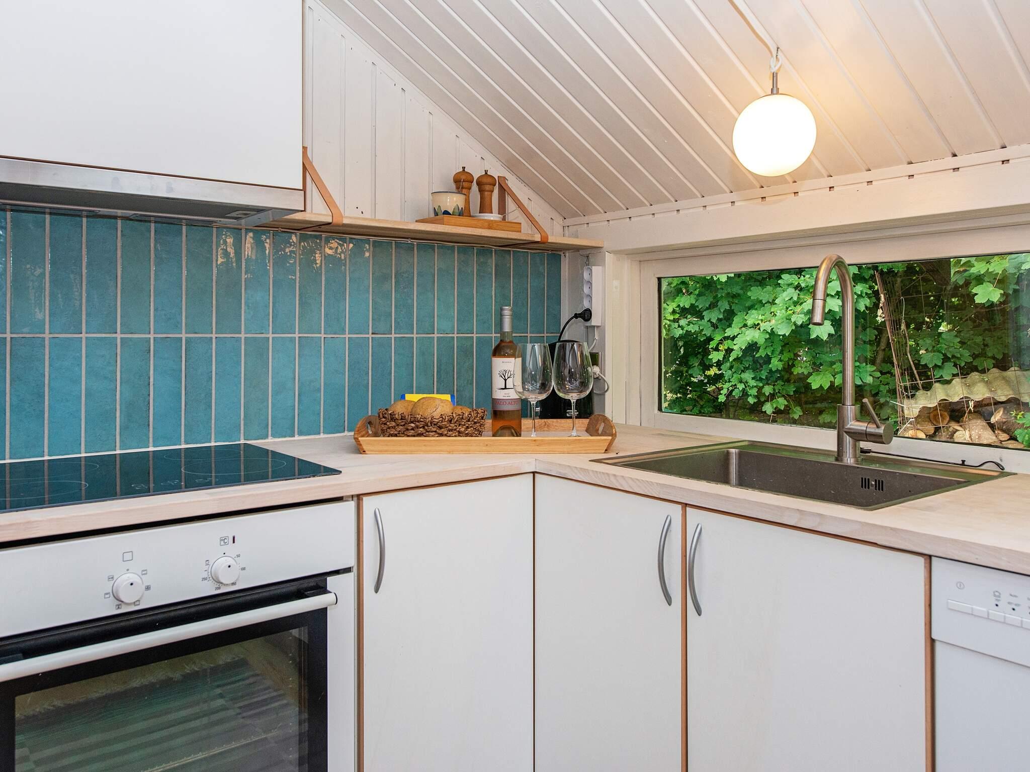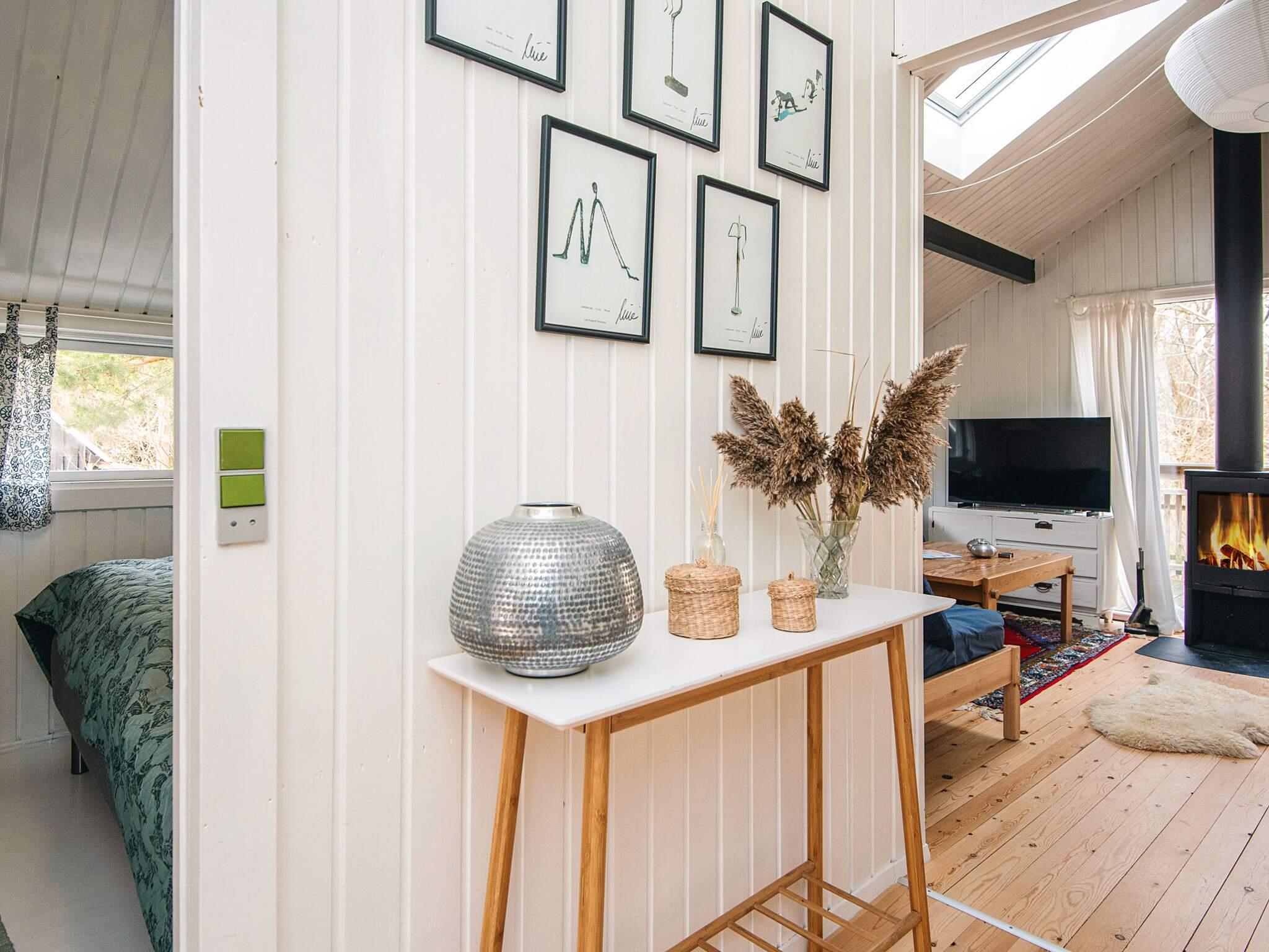 Indenfor er huset lyst og indbydende. Den hyggelige stue har en brændeovn, der skaber en varm og afslappende stemning, især på køligere dage. Store vinduespartier slipper masser af dagslys ind og åbner direkte ud til terrassen, hvilket gør det nemt at flytte mellem indendørs og udendørs. Det rummelige køkken er veludstyret og inkluderer en spiseplads, hvor alle kan samles til måltider sammen. Herfra er der også direkte udgang til terrassen, så udendørs spisning er altid en mulighed.