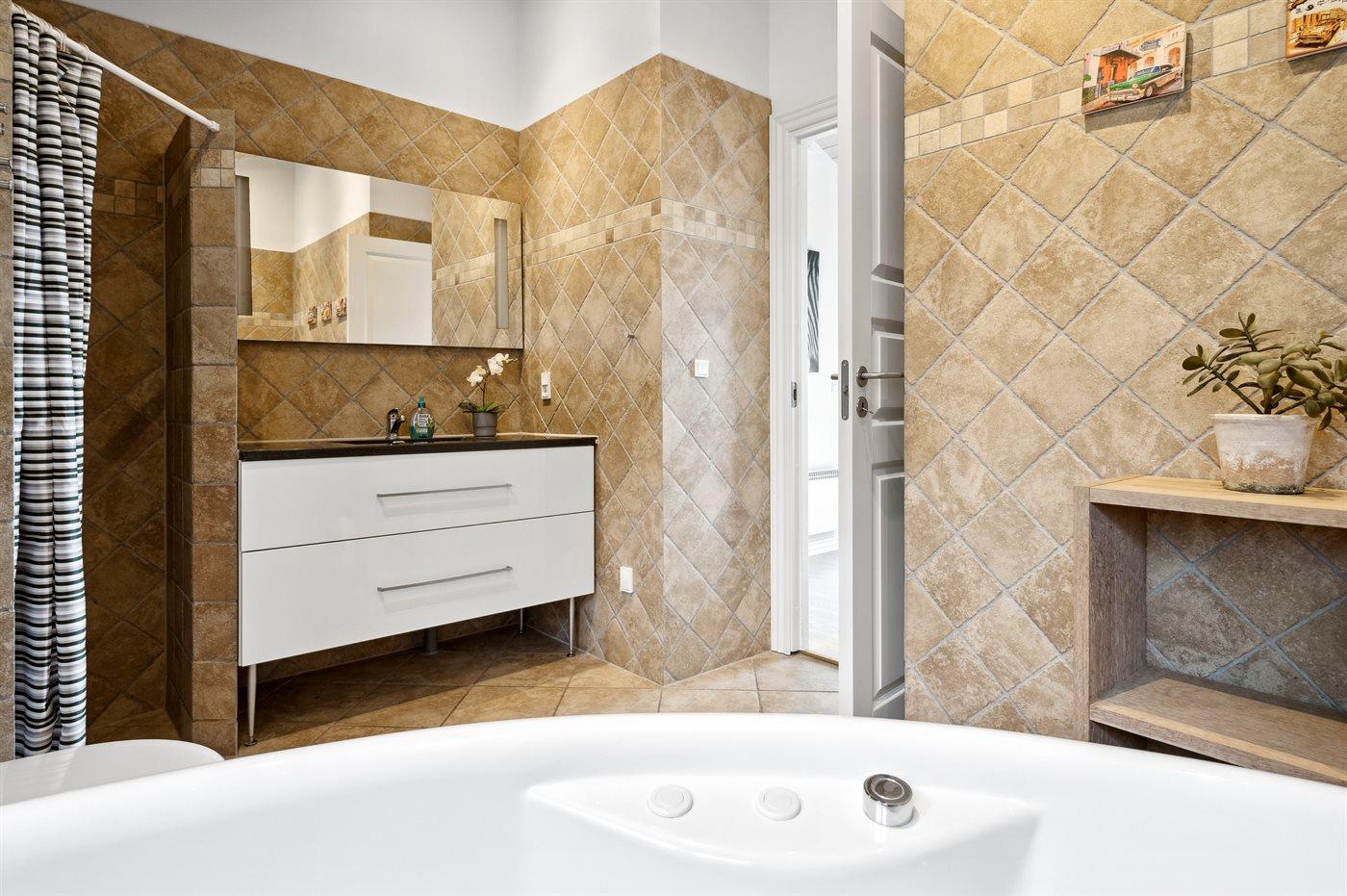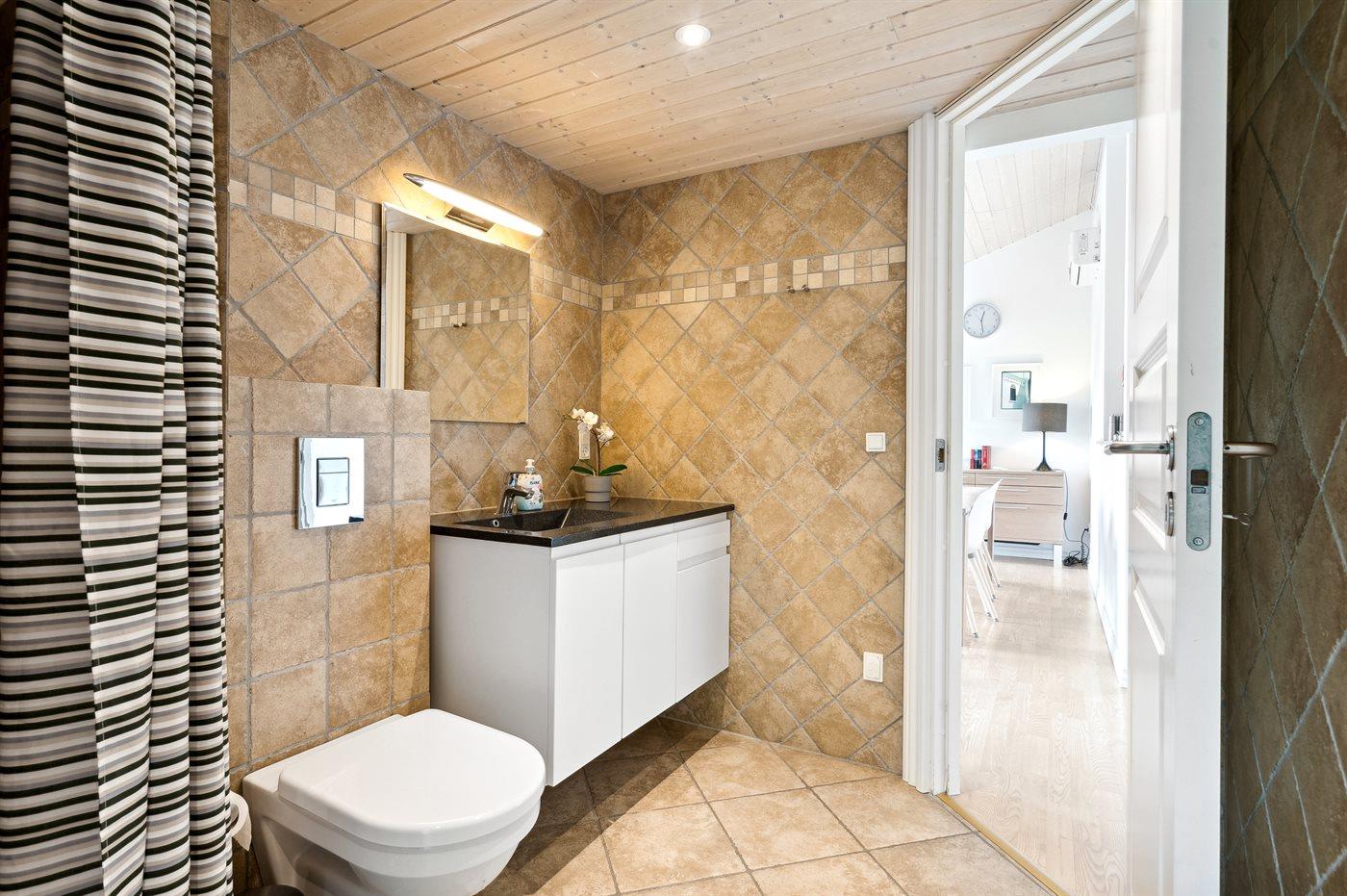 Der er 2 badeværelser med bruseniche og 2 toiletter, heraf 1 gæstetoilet. Der er gulvvarme på 1 badeværelse. Der er gulvvarme på gæstetoilettet.