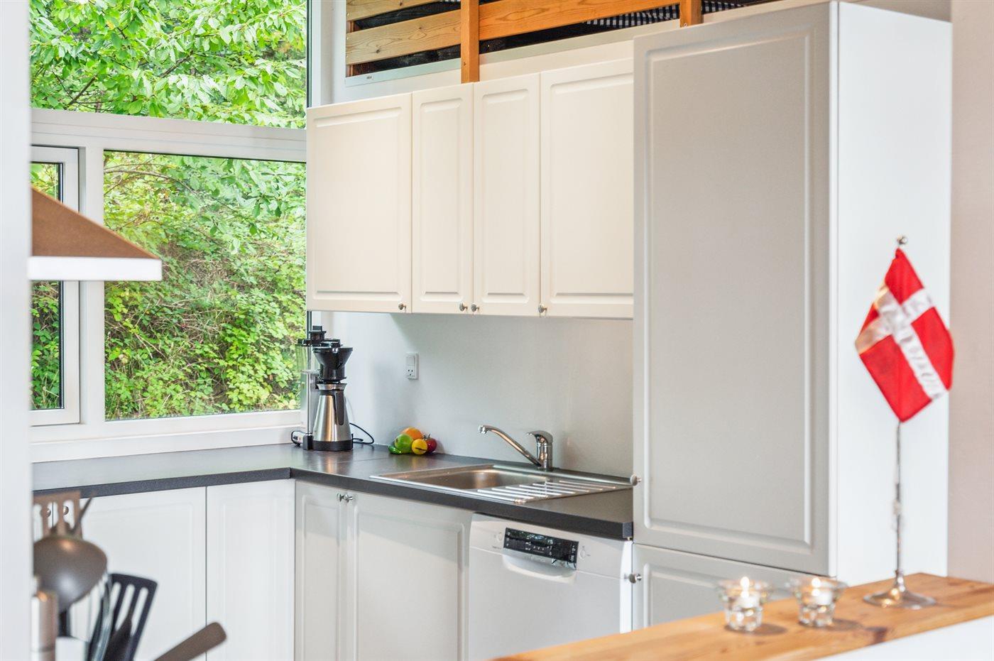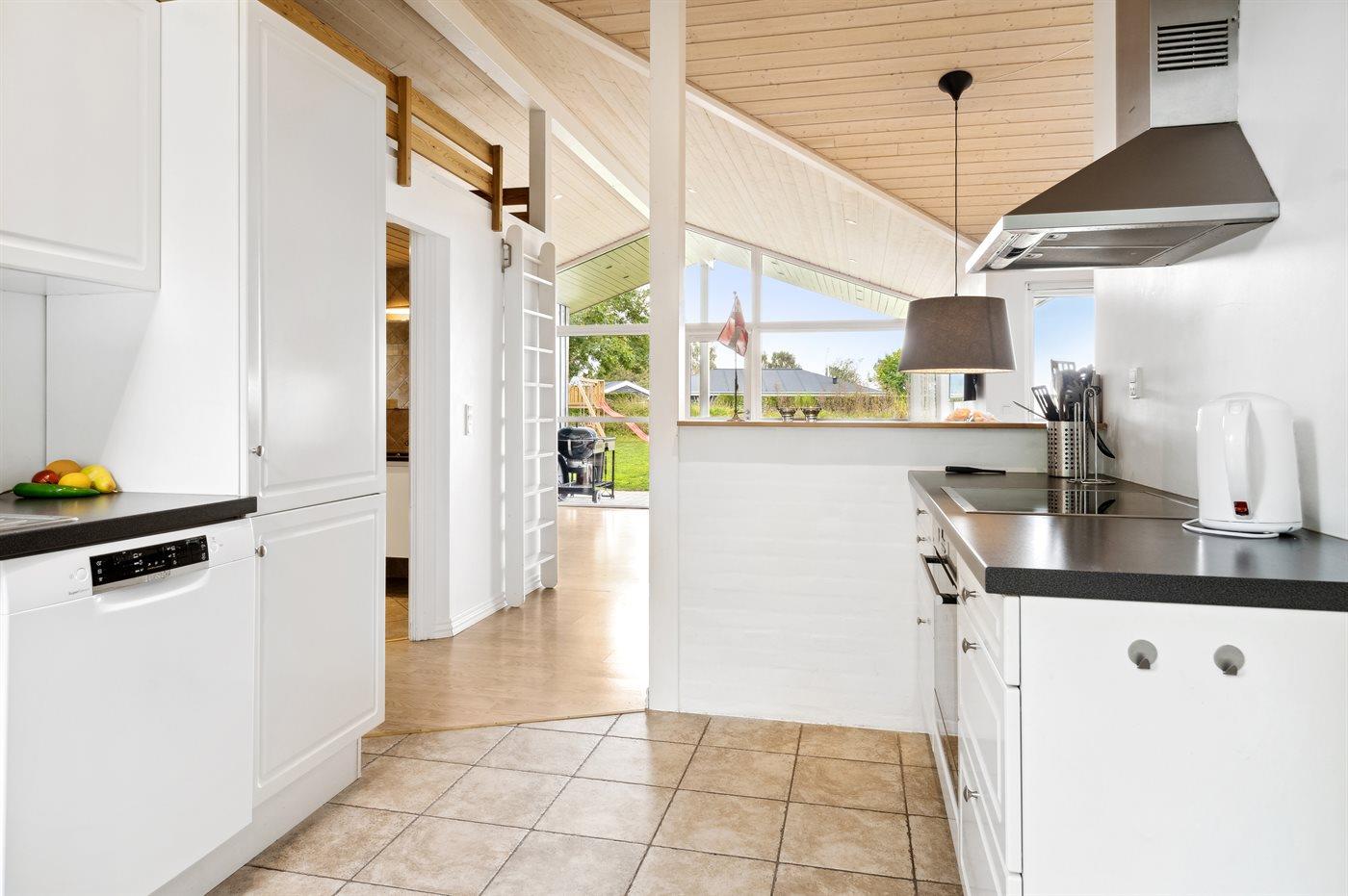 Køkkenet er udstyret med 1 køleskab. Der er 4 keramiske kogeplader, varmluftovn, mikrobølgeovn samt opvaskemaskine.