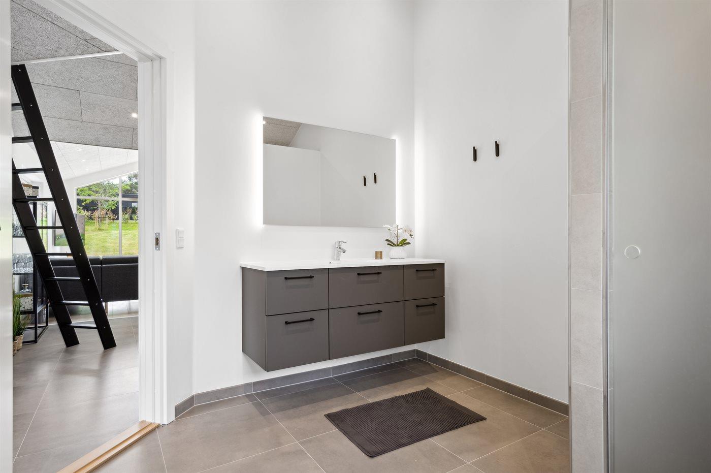 Der er 2 badeværelser med bruseniche og 2 toiletter. Der er gulvvarme på 2 badeværelser.