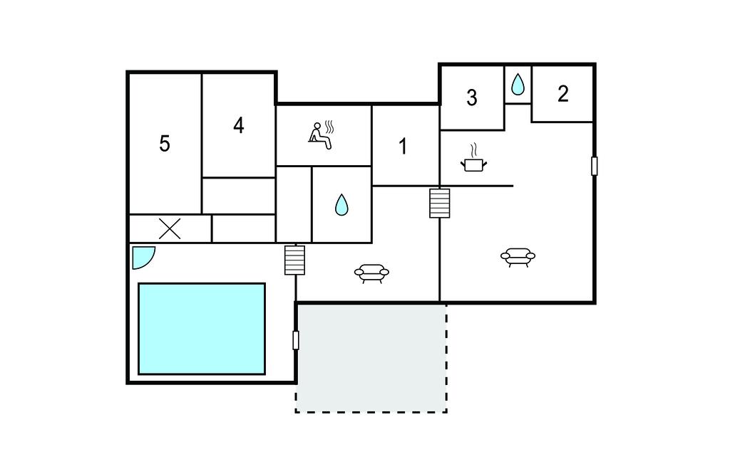 Læn jer tilbage i den hyggelige opholdsstue, hvor store vinduer, komfortable sofaer og varme træpaneler skaber en indbydende atmosfære. Brug det åbne køkken til at tilberede måltider sammen og nyde dem ved spisebordet med udsigt over haven. Glæd jer til afslappende timer i poolrummet, som har både swimmingpool og spabad for øjeblikke af ren lykke. Forkæl jer selv med en stund i saunaen og lad jeres krop og sind slappe af.