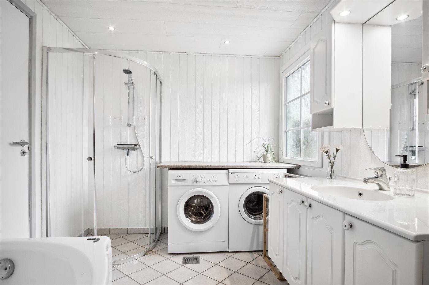 Der er 1 badeværelse med bruseniche og 2 toiletter, heraf 1 gæstetoilet. Der er gulvvarme på 1 badeværelse.