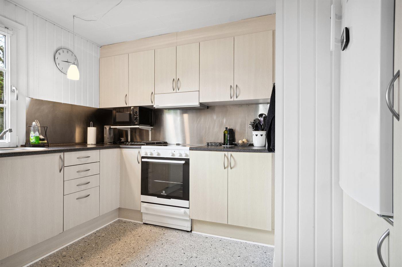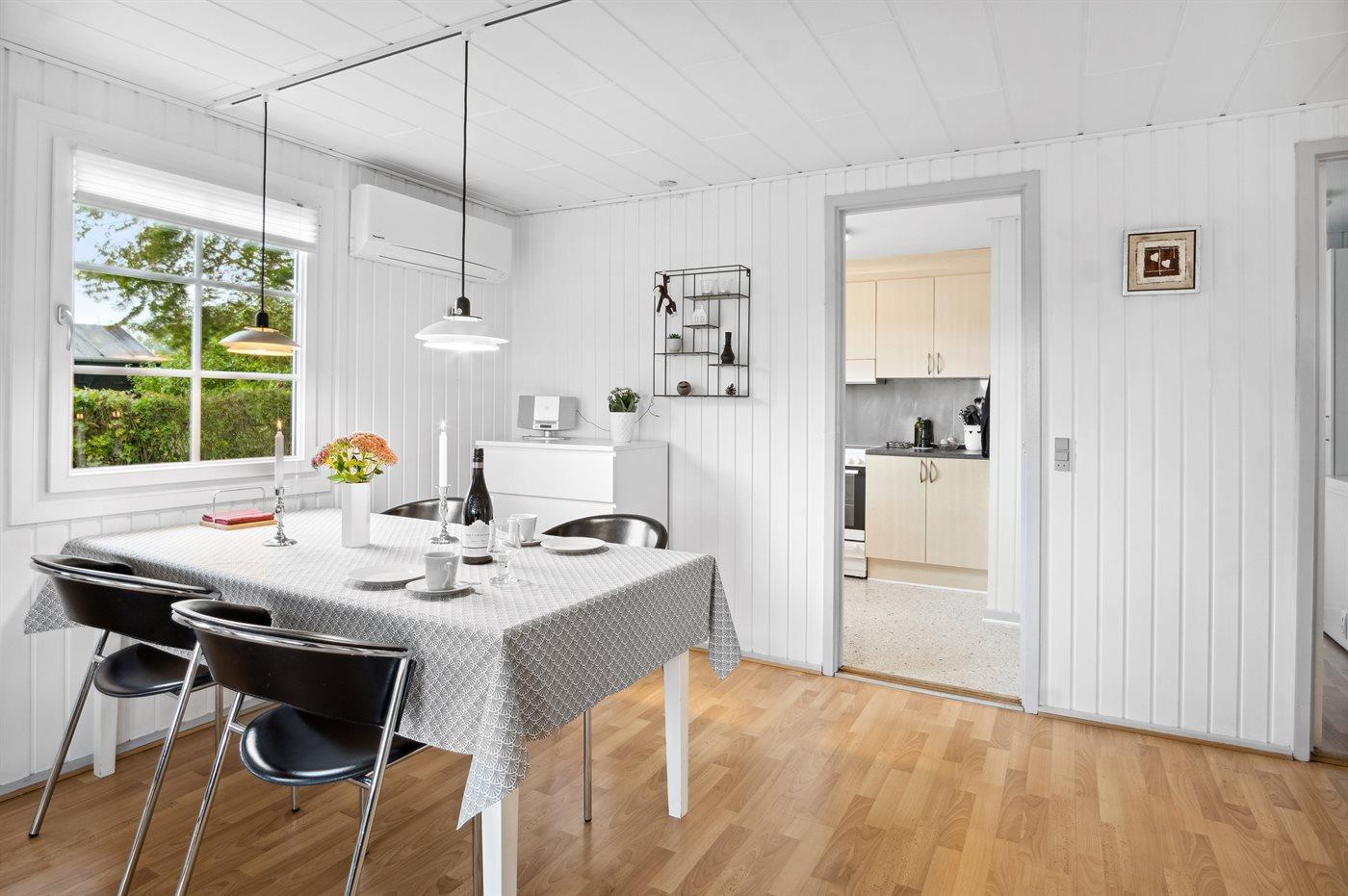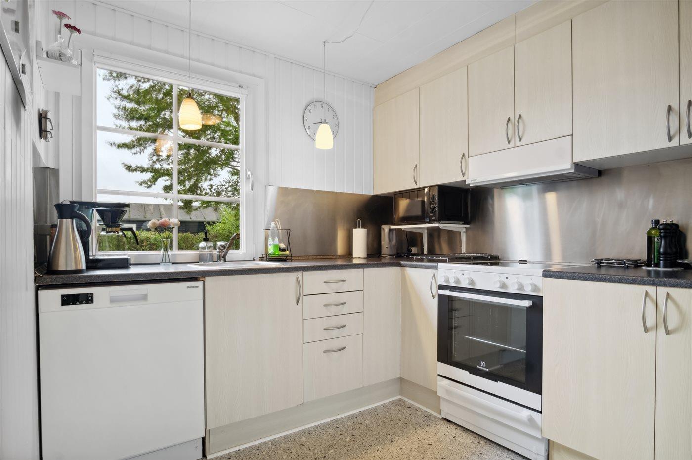 Køkkenet er udstyret med 1 køleskab. Der er 4 keramiske kogeplader, varmluftovn, mikrobølgeovn samt opvaskemaskine.