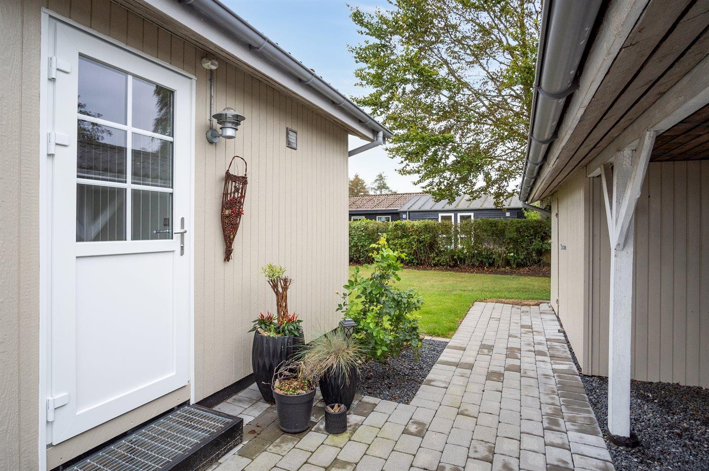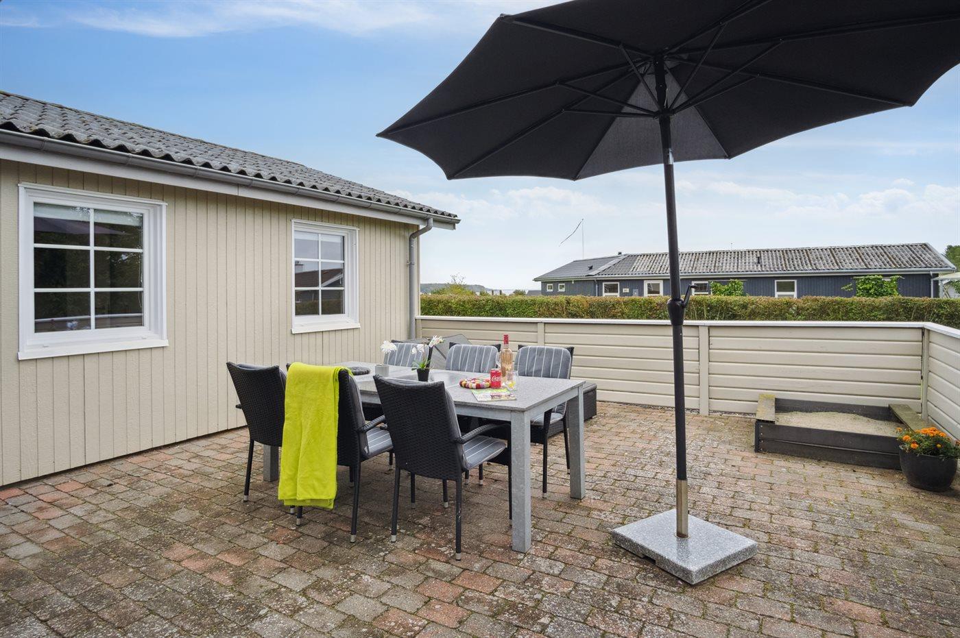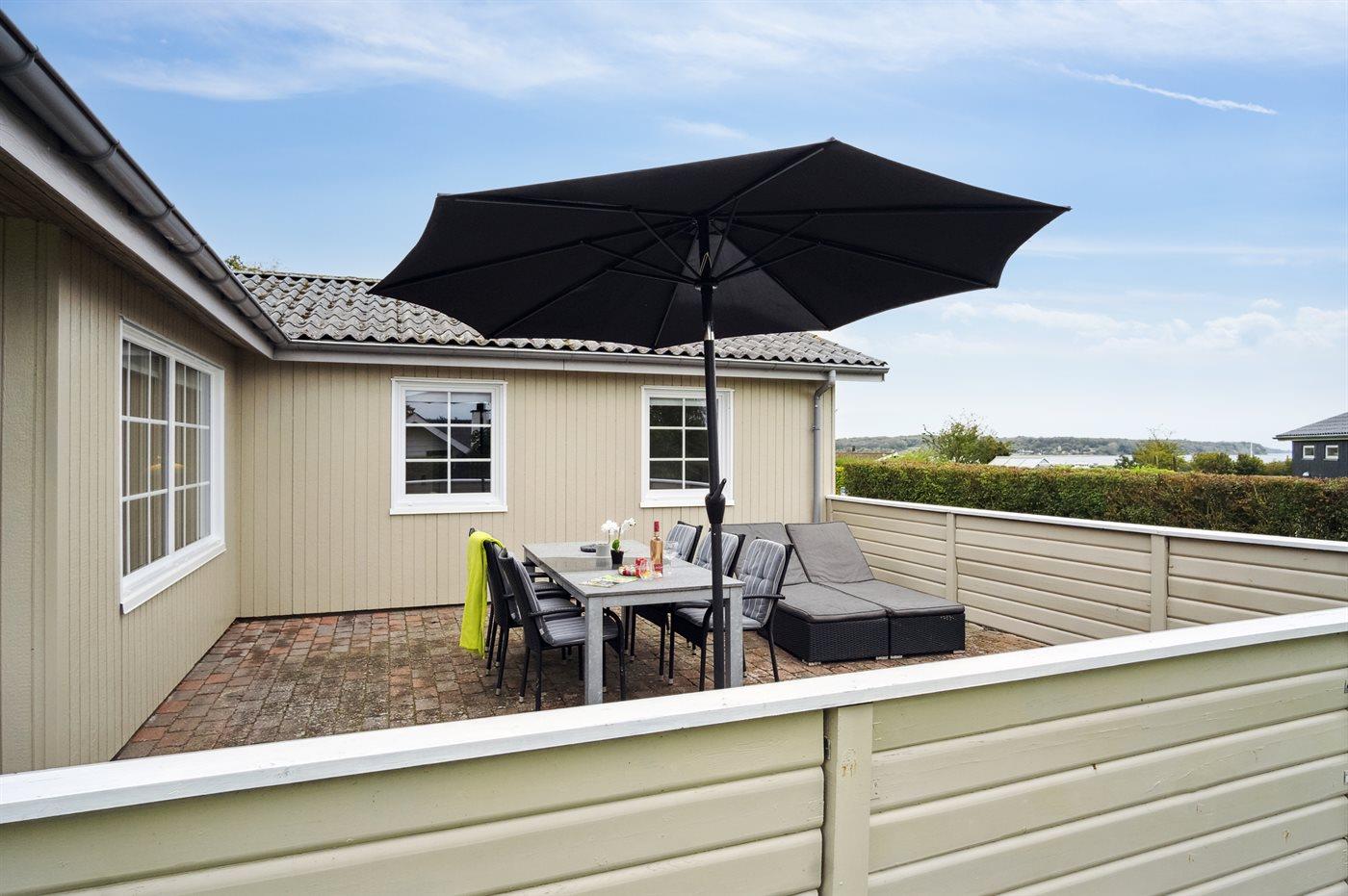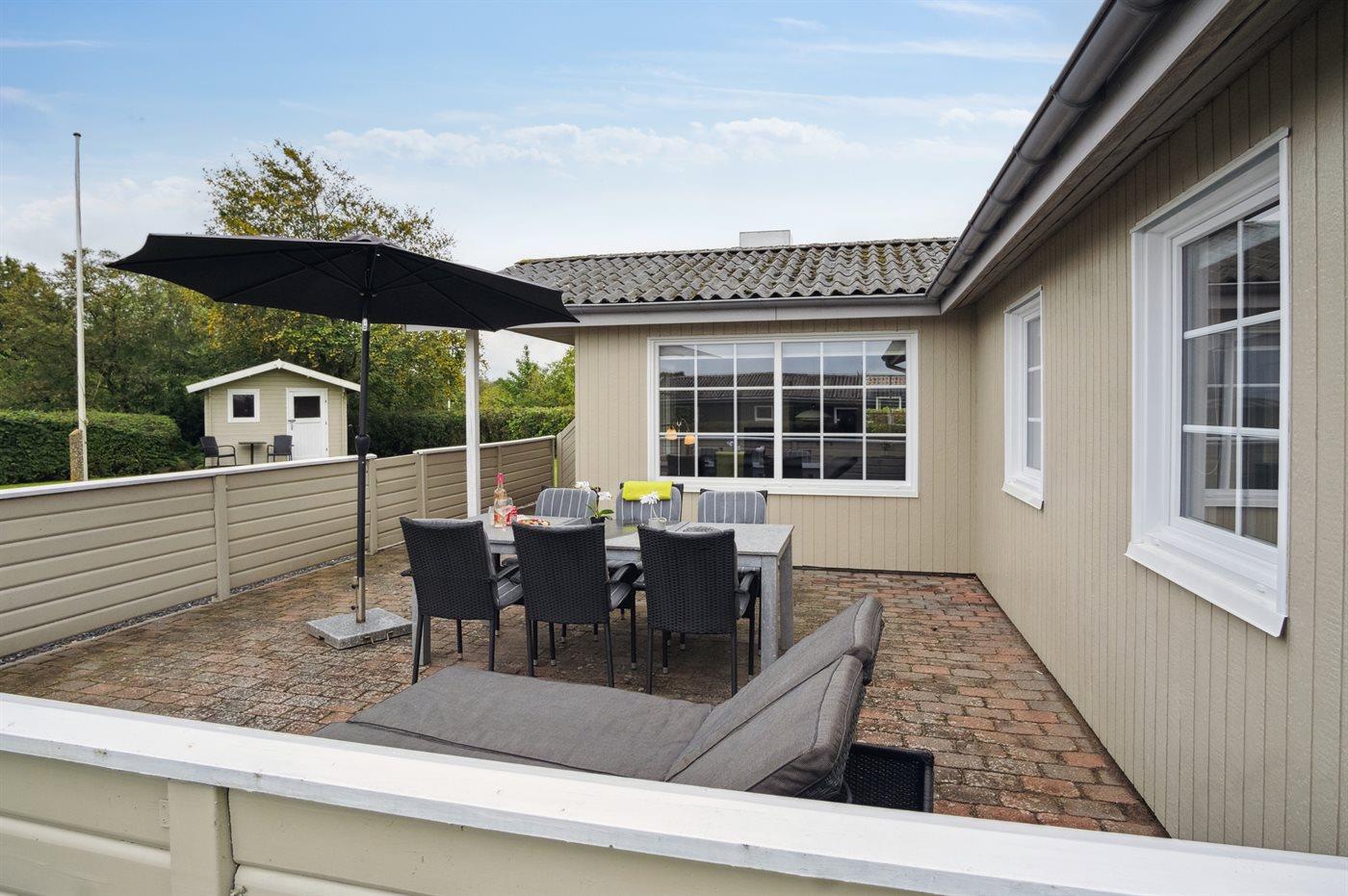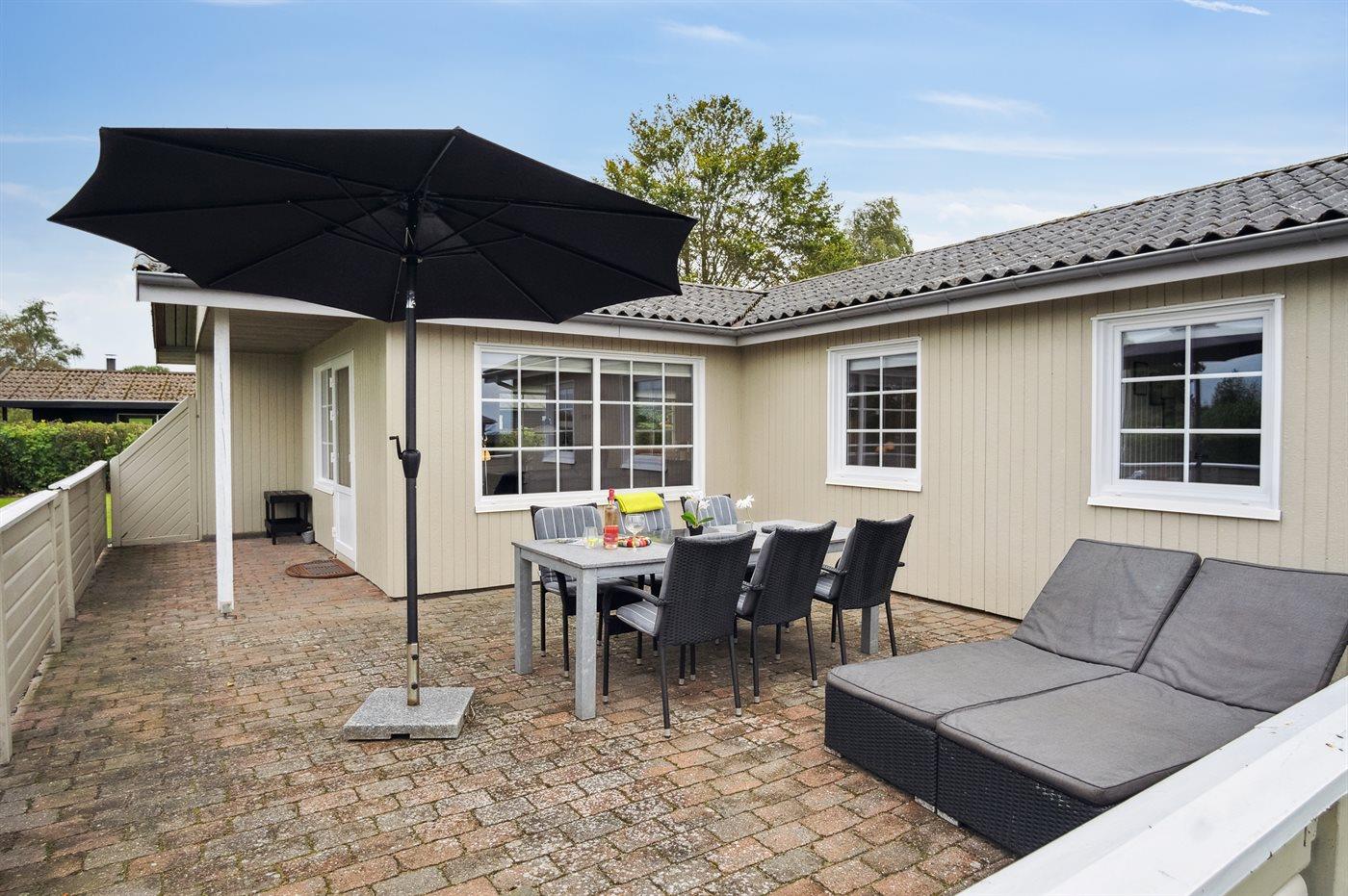 Ferieboligen er beliggende på en 982 m² stor havegrund. Der er 300 m til havet. Nærmeste forretning er beliggende i en afstand af 250 m. Til ferieboligen hører 30 m² terrasseareal. Desuden er der 8 m² overdækket terrasse. Heraf i alt 35 m² lukket terrasse. Der er redskabsrum. Sandkasse. Der er carport til rådighed.